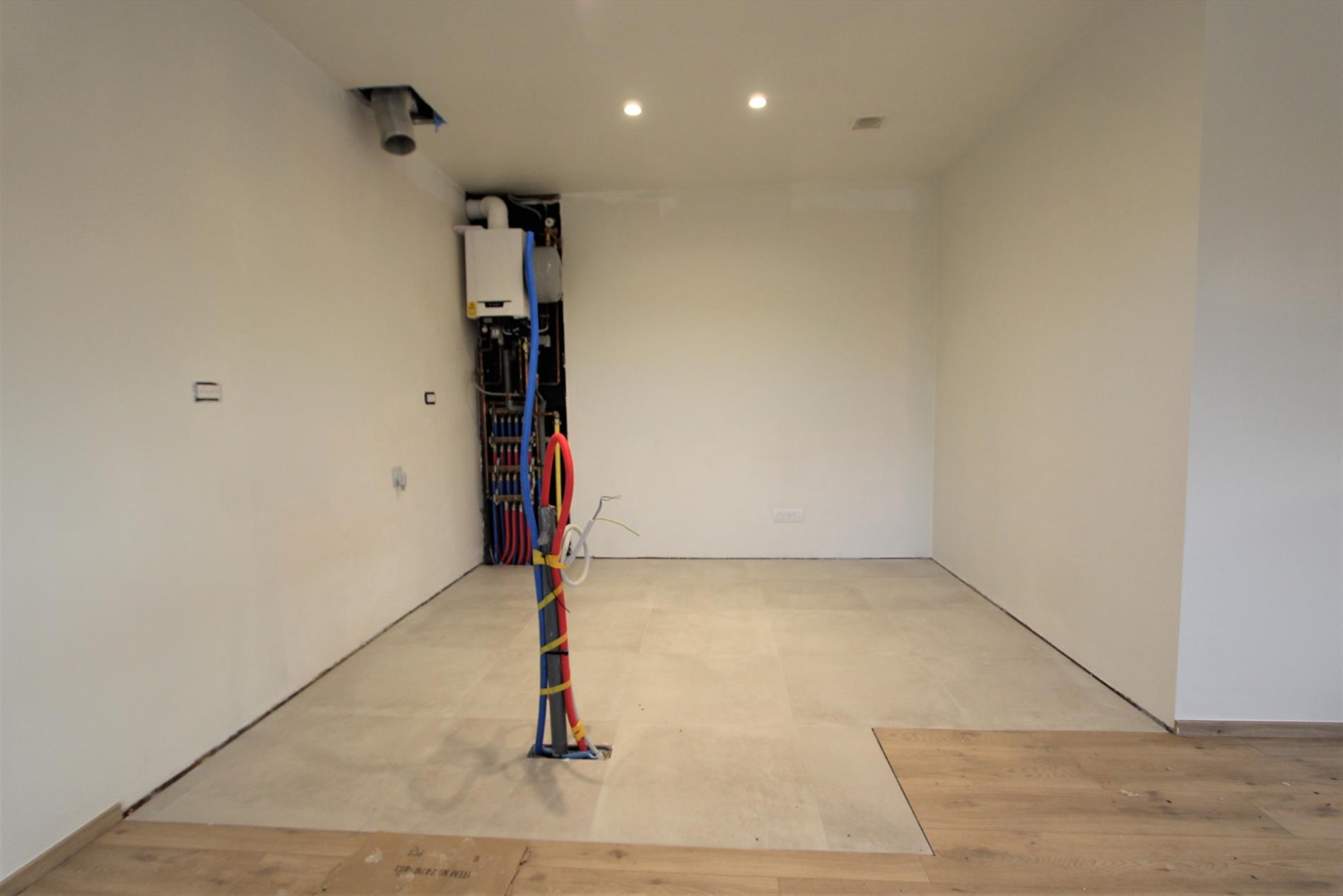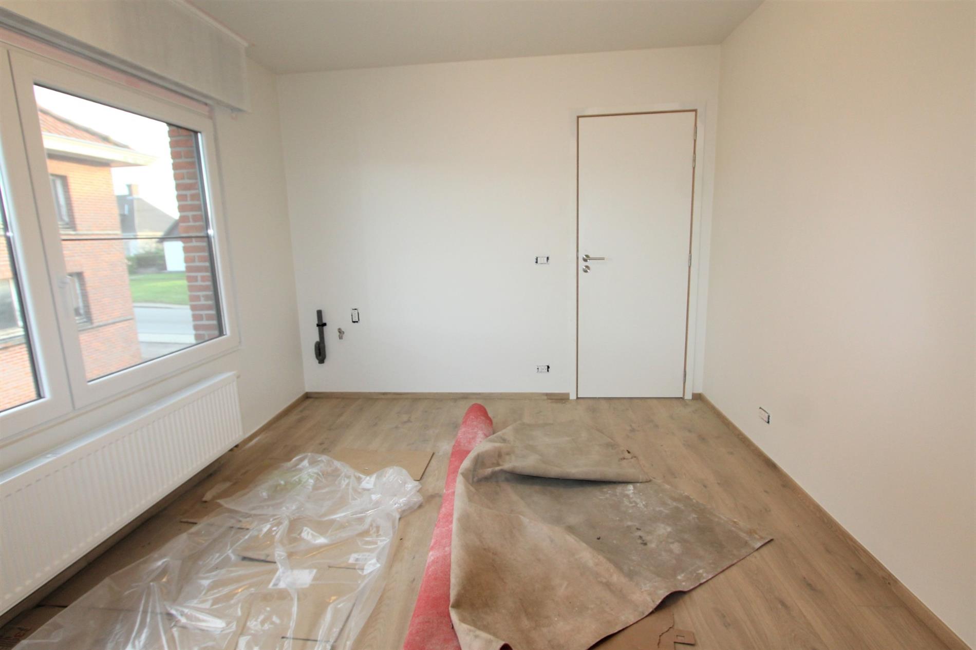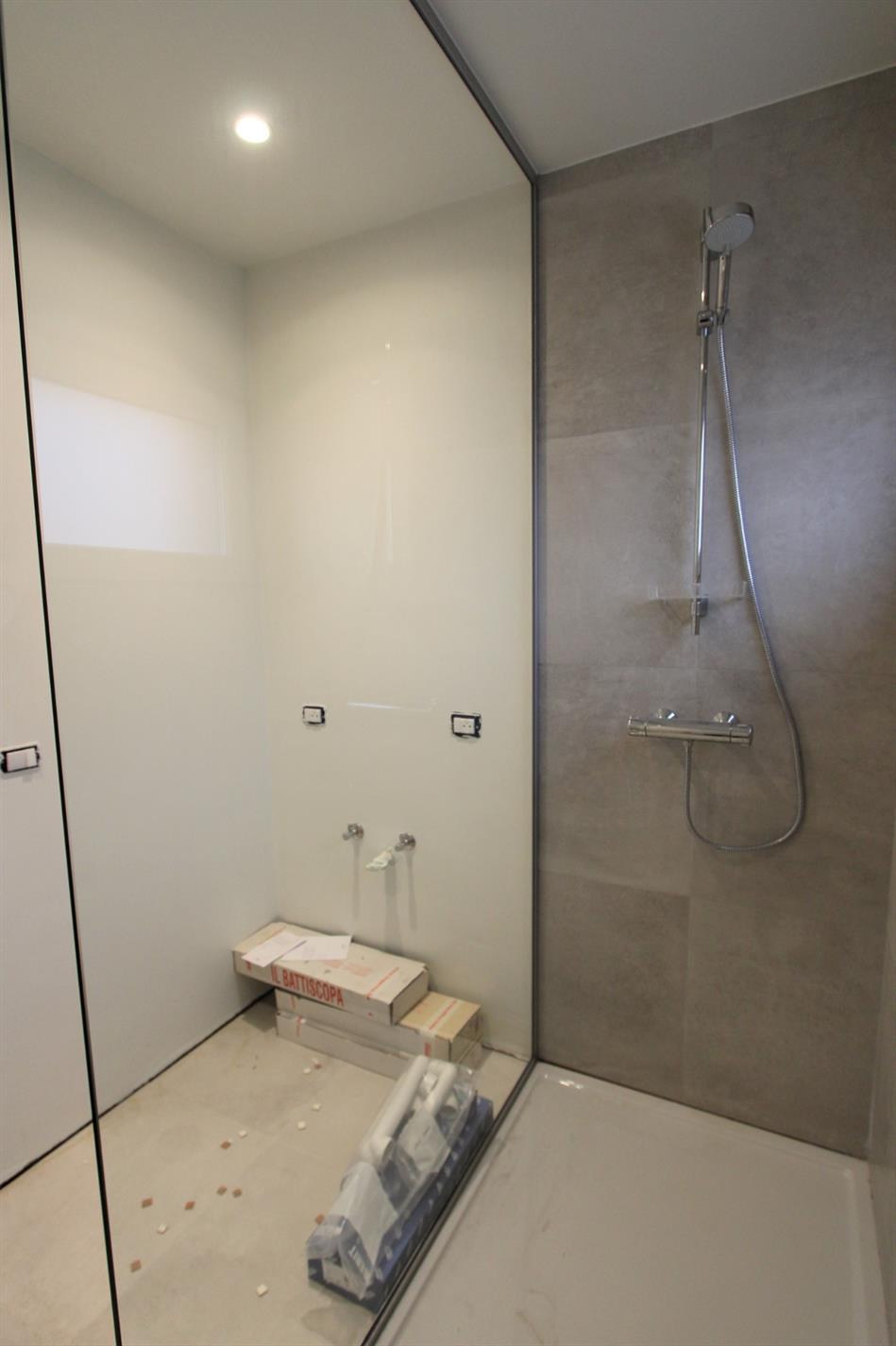 Deze parel is gelegen op het eerste verdiep. Het appartement is enkel bereikbaar via de vaste trap vanuit de gemeenschappelijke gang. Via de inkomhal is er toegang tot alle ruimtes van het appartement. De lichtrijke leefruimte met open, volledig ingerichte keuken geeft rechtstreeks toegang tot het terras. De keuken wordt nog geplaatst en zal voorzien zijn van alle comfort (vaatwasser | oven | microgolf | inductie kookplaat |koelkast met vriesvak | spoelbak).