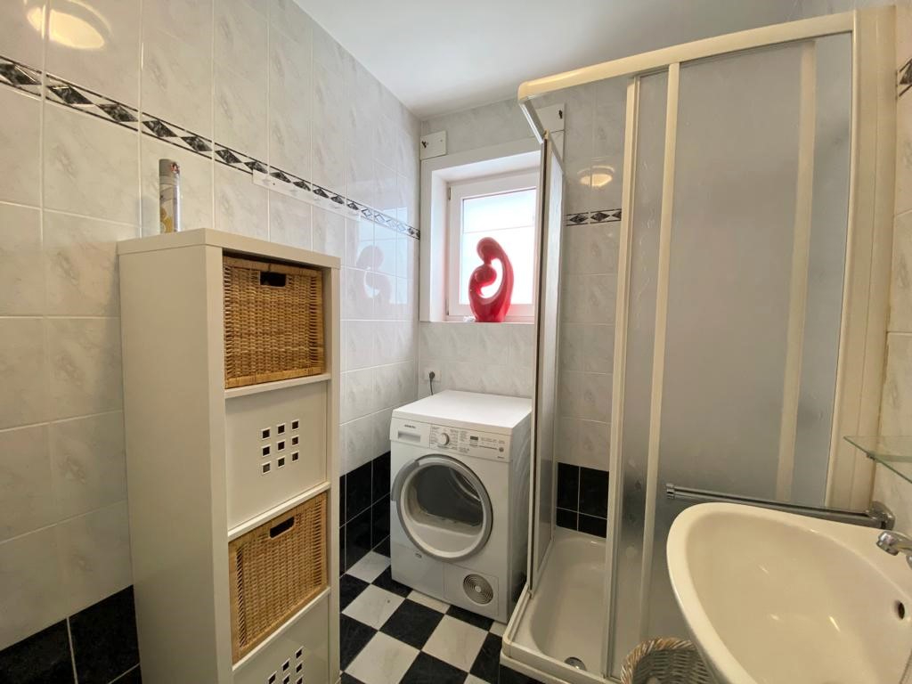 Dit appartement omvat een woonkamer met ruimte voor een zithoek en een eethoek. Aansluitend is de open ingerichte keuken en het ruime zongerichte terras. De keuken omvat een oven - keramische kookplaat - dampkap - spoelbak en een koelkast. De woonkamer biedt ook toegang tot de berging ( aansluiting wasmachine en droogkast ), tot de slaapkamer en de badkamer. De badkamer is voorzien van een toilet - lavabo en douche.