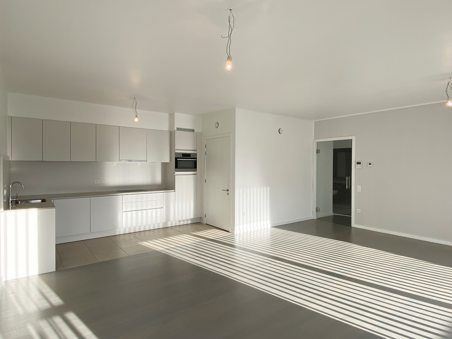 Het appartement is voorzien van een ruime inkomhal met aansluitend het gastentoilet. Via een glazen deur komt U in de ruime lichtrijke leefruimte terecht waar er plaats is voor een zithoek en een eethoek. Aansluitend is de open volledig ingerichte keuken ( kookplaat - dampkap - koelkast - vaatwas - spoelbak - combi microgolf/oven ). Naast de keuken is een ruime berging met aansluiting voor de wasmachine en droogkast. Via een schuifraam in de woonkamer is het zongerichte terras bereikbaar.