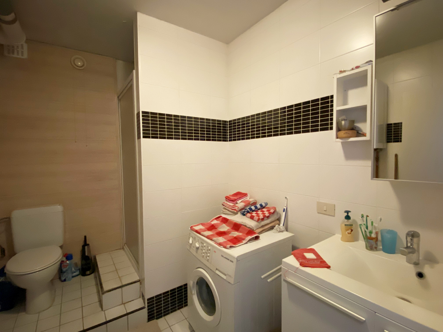 Vervolgens is er de badkamer met douche | lavabo in meubel | toilet en aansluiting voor wasmachine. Vervolgens zijn er 2 slaapkamers waarvan de kleinste kamer voorzien is van een grote ingemaakte kast.