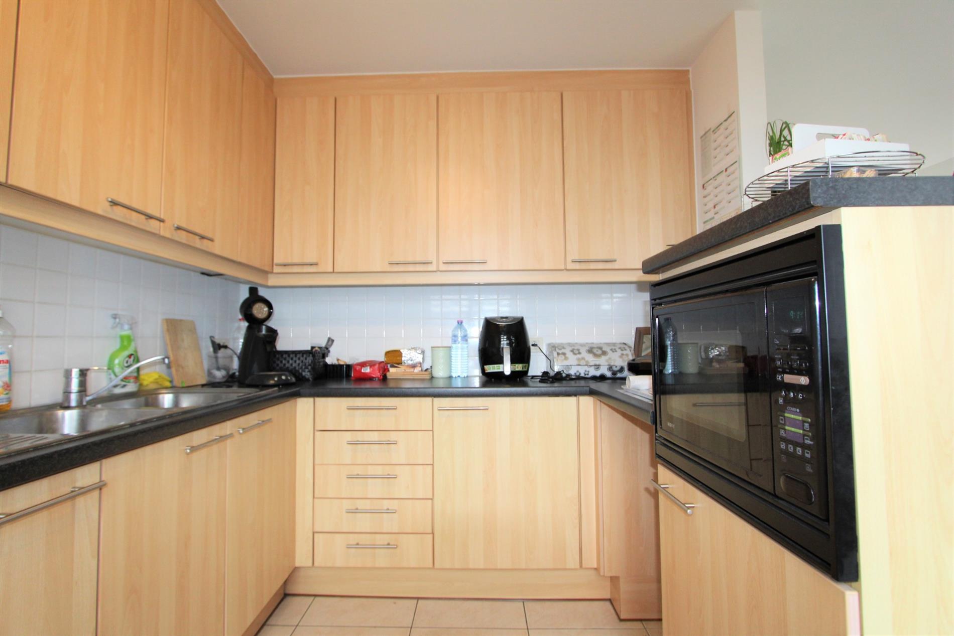 De keuken omvat een combi microgolf- oven, een spoelbak, een kookplaat, een dampkap en een koelkast. In de keuken is ook de aansluiting voor de wasmachine.