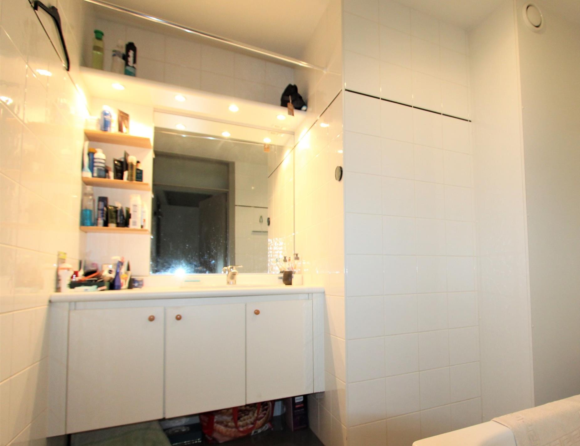 Het appartement is ONMIDDELLIJK beschikbaar en omvat een inkomhal met vestiaireruimte en een gastentoilet. Vervolgens komt U terecht in de leefruimte met ruimte voor een zithoek en een eethoek en toegang tot het terras.