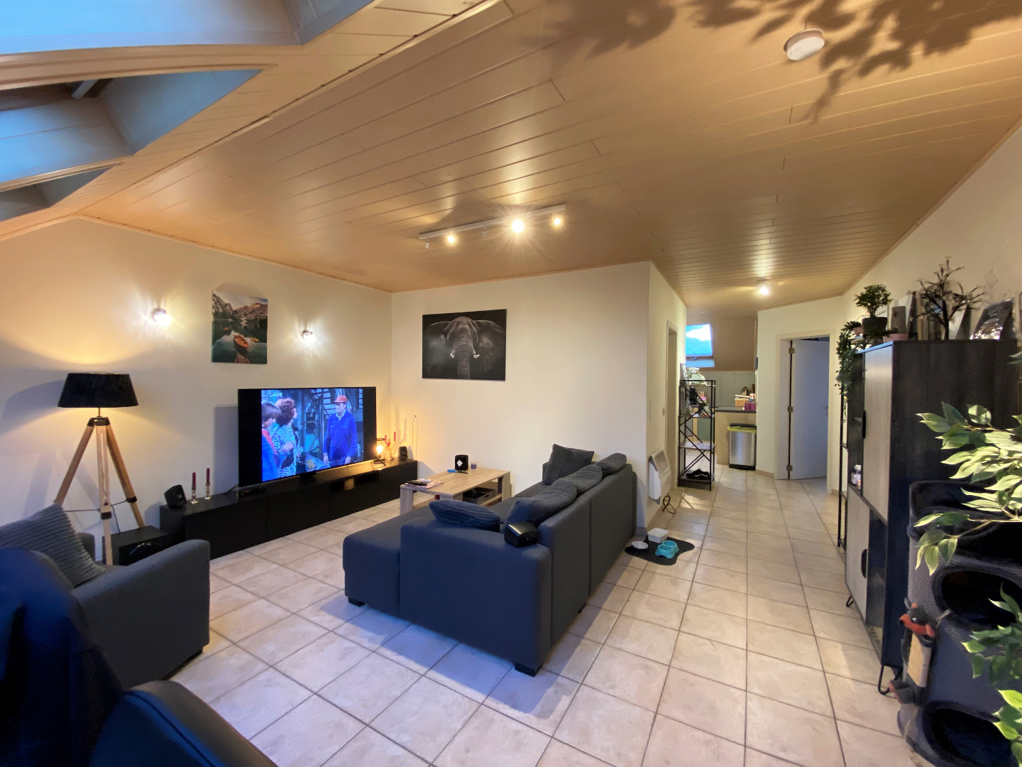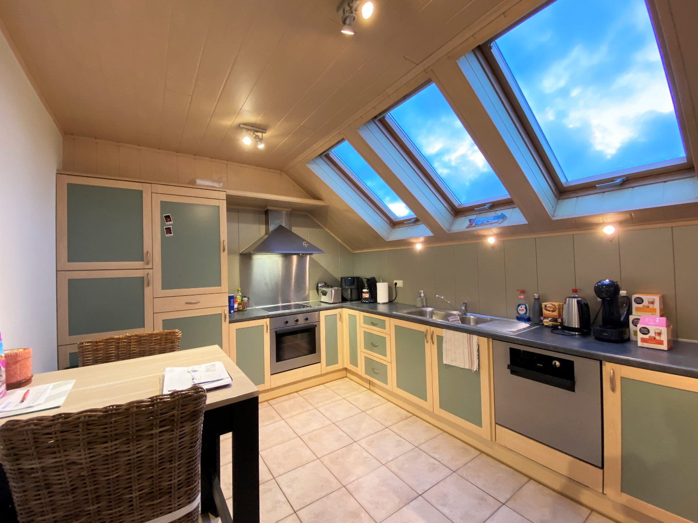U komt binnen via de inkomhal. De woonkamer heeft veel lichtinval door de veluxen, de open ingerichte keuken omvat een koelkast met diepvries, vaatwasmachine, oven, kookplaat en dampkap. Ook hier is veel lichtinval. De badkamer heeft een ligbad, lavabo en toilet. Tevens omvat het appartement 2 slaapkamers, waarvan 1 met ingemaakte kast.