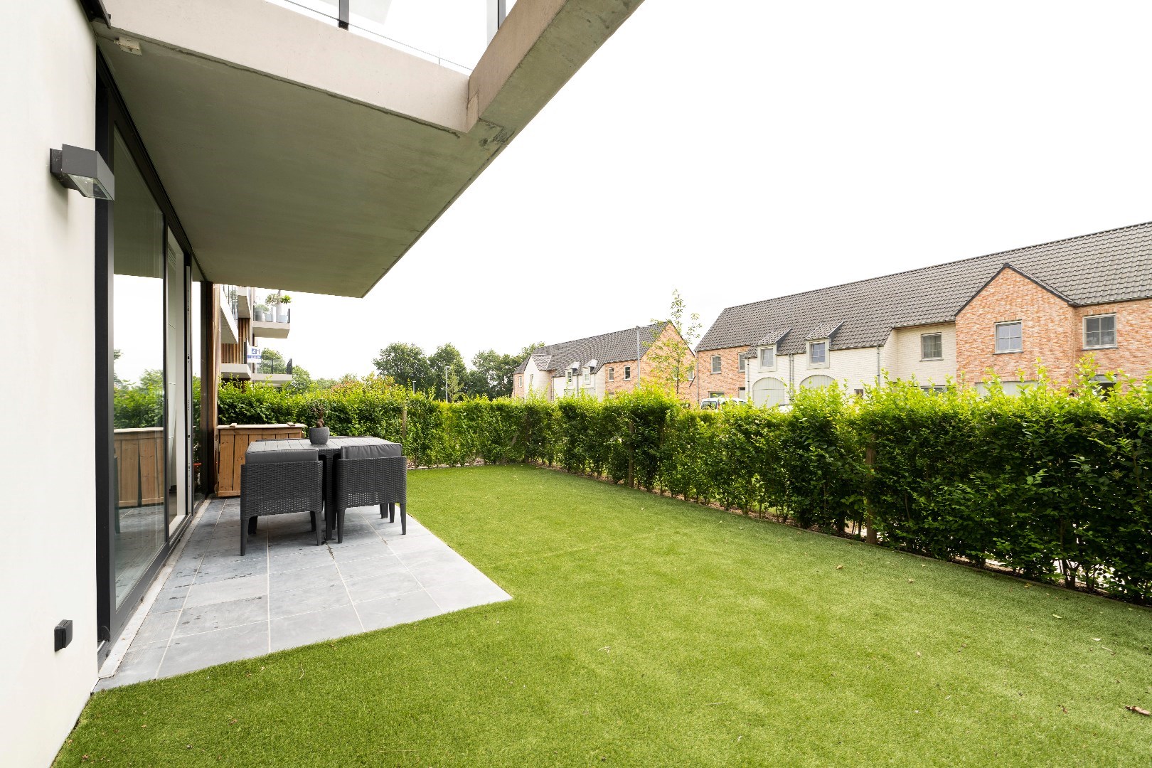 U komt het appartement binnen via de inkomhal met apart gastentoilet. Verder komt U terecht in de lichtrijke leefruimte (28 m²) die toegang biedt tot de tuin/terras. Door de grote raampartijen is er natuurlijk lichtinval en geniet U van direct contact met de tuin vanuit de leefruimte. Aansluitend is er de ingerichte keuken (natuursteen werkblad | kookplaat | dampkap | spoelbak | frigo met diepvriesvak | combi oven). Praktisch is de aansluitende berging (4 m²). Vervolgens beschikt het appartement nog over een badkamer (inloopdouche | aansluiting voor wasmachine en droogkast | lavabo met meubel) en als laatste de tweepersoons slaapkamer (10,50 m²).