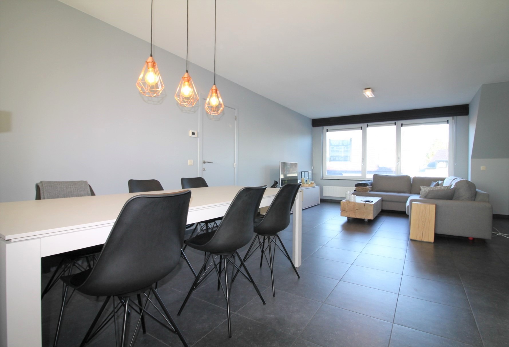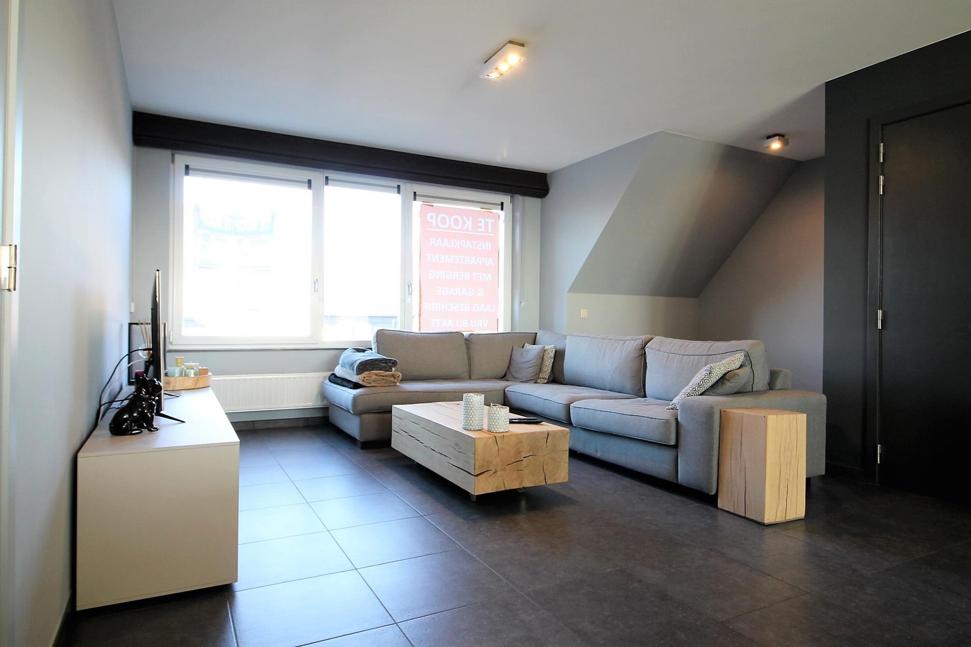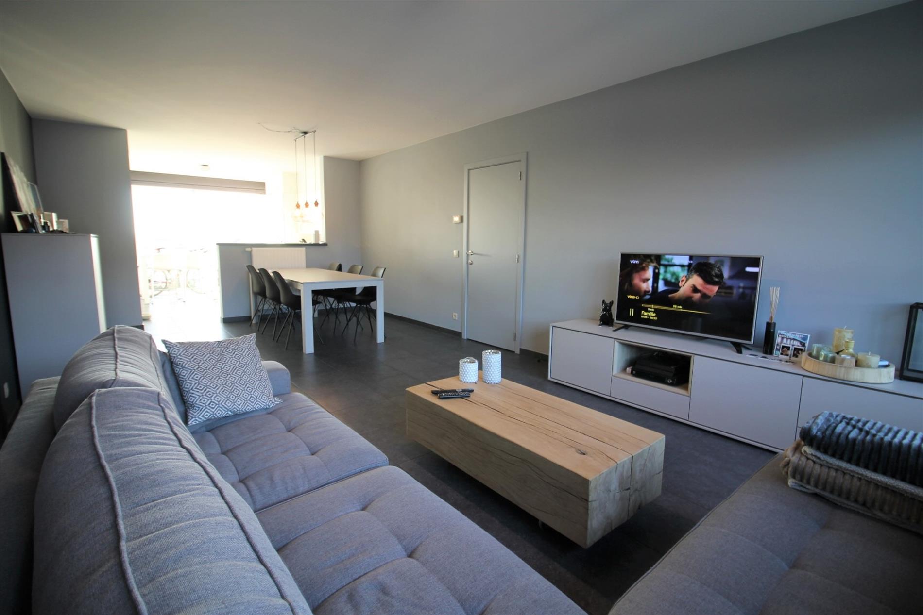 Het appartement is voorzien van een gezellige volledig ingerichte woonkamer (30 M² - volledig professioneel geschilderd met bijhorende gordijnen), een bureelhoek , een open ingerichte keuken met aansluitend de berging.