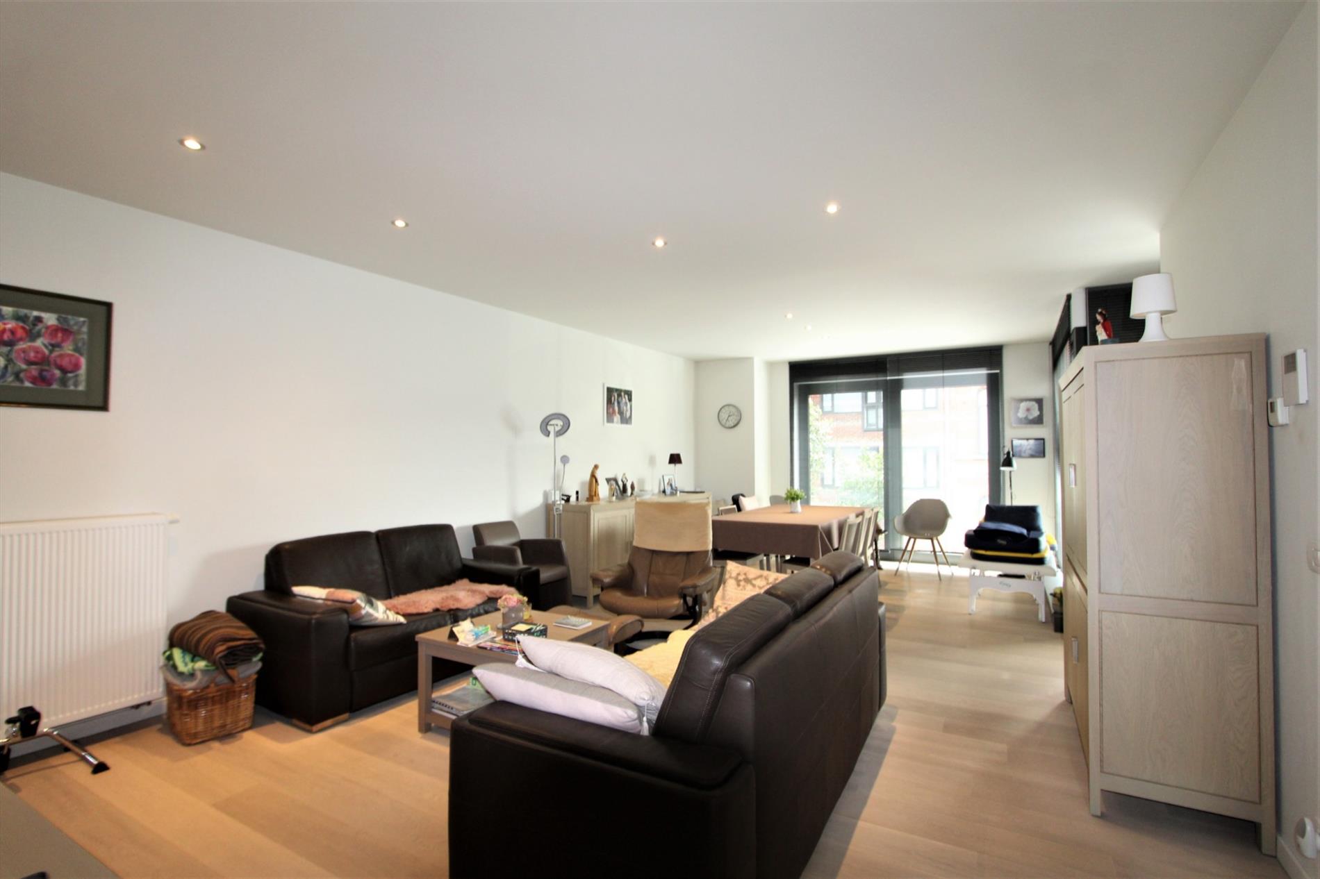 Het appartement omvat een inkomhall met gastentoilet, een ruime lichtrijke leefruimte (zithoek en eethoek) met toegang tot het voorste terras. Tevens is een volledig geïstalleerde keuken aanwezig met aansluitende berging ( voorziening wasmachine en droogkast )