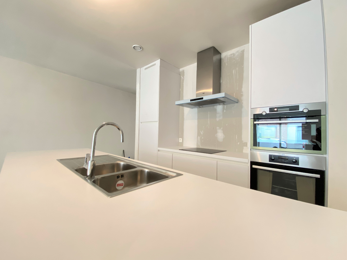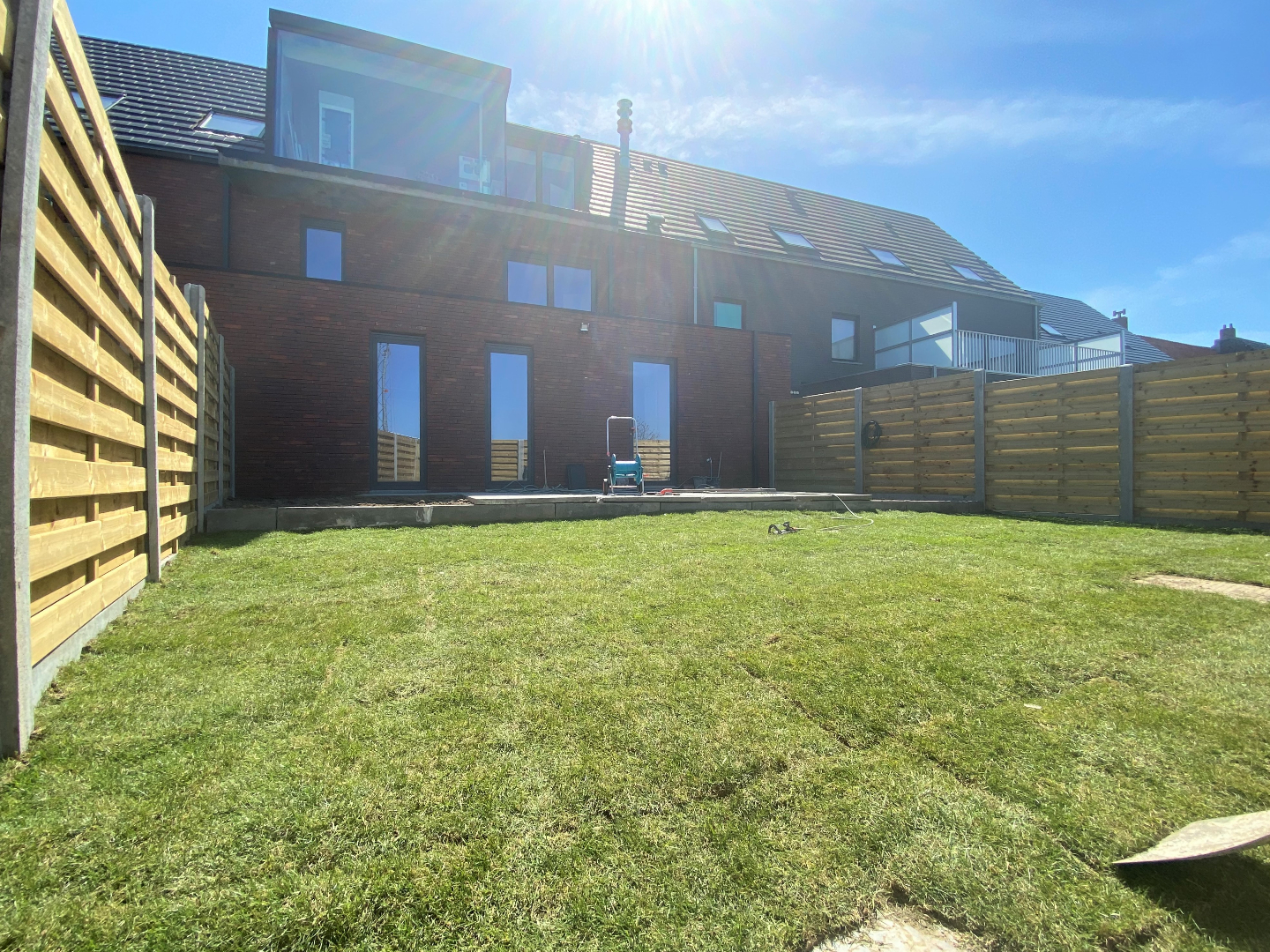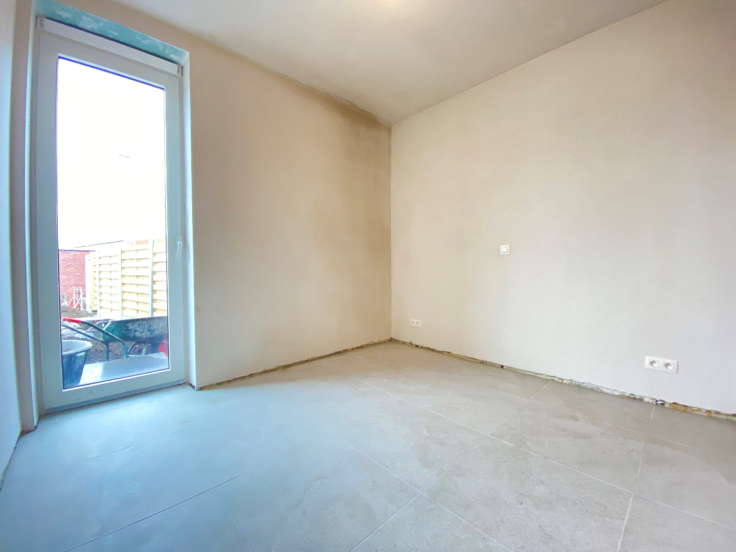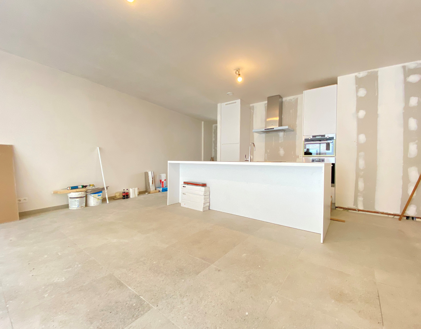 Het appartement omvat een lichtrijke leefruimte met open ingerichte keuken. De keuken omvat een vaatwasmachine | koelkast met diepvriesvak | kookplaat | combi oven. Verder komt u terecht in de hal die toegang verleent tot de berging met aansluiting voor een wasmachine. Via de hal kan u het terras met de tuin betreden.