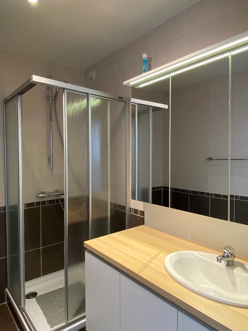 Tot slot beschikt dit appartement over 2 slaapkamers, een badkamer met lavabomeubel en douche. Kelderberging en een staanplaats zijn inbegrepen in de huurprijs.