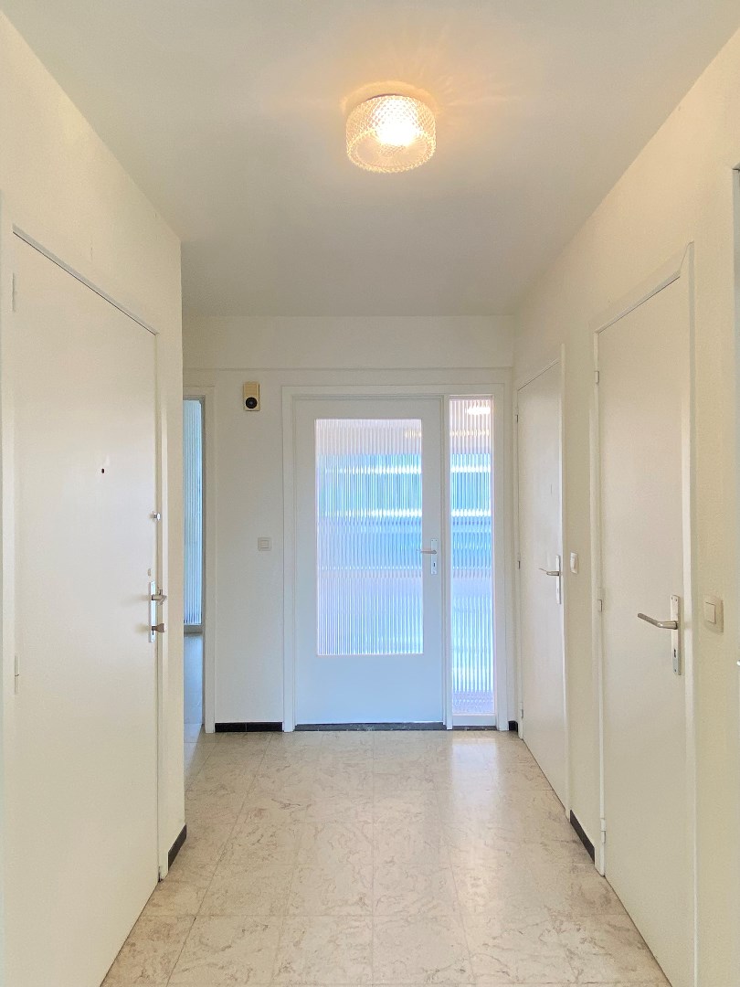 U komt het appartement binnen via de inkomhal met apart gastentoilet, vestiaire en berging.