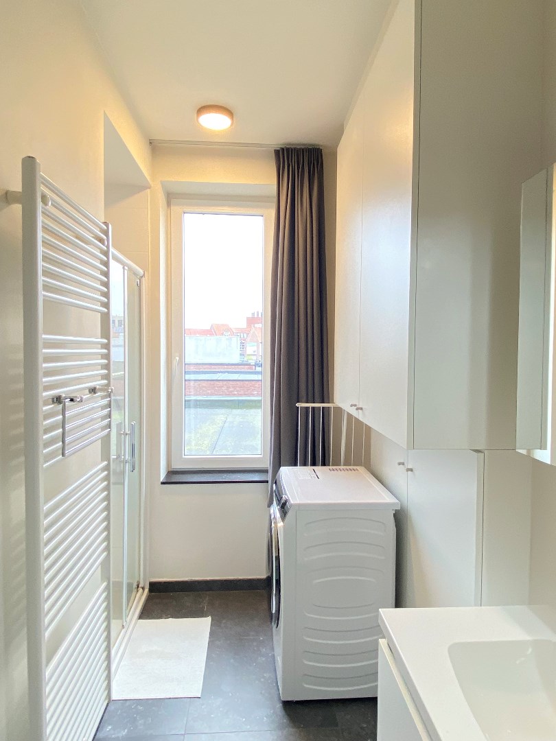 Tevens is er een ruime slaapkamer aanwezig (11,50 m²) en een volledig ingerichte badkamer (ingebouwde kasten | lavabomeubel | douche). In de badkamer is er een aansluiting voor een wasmachine.