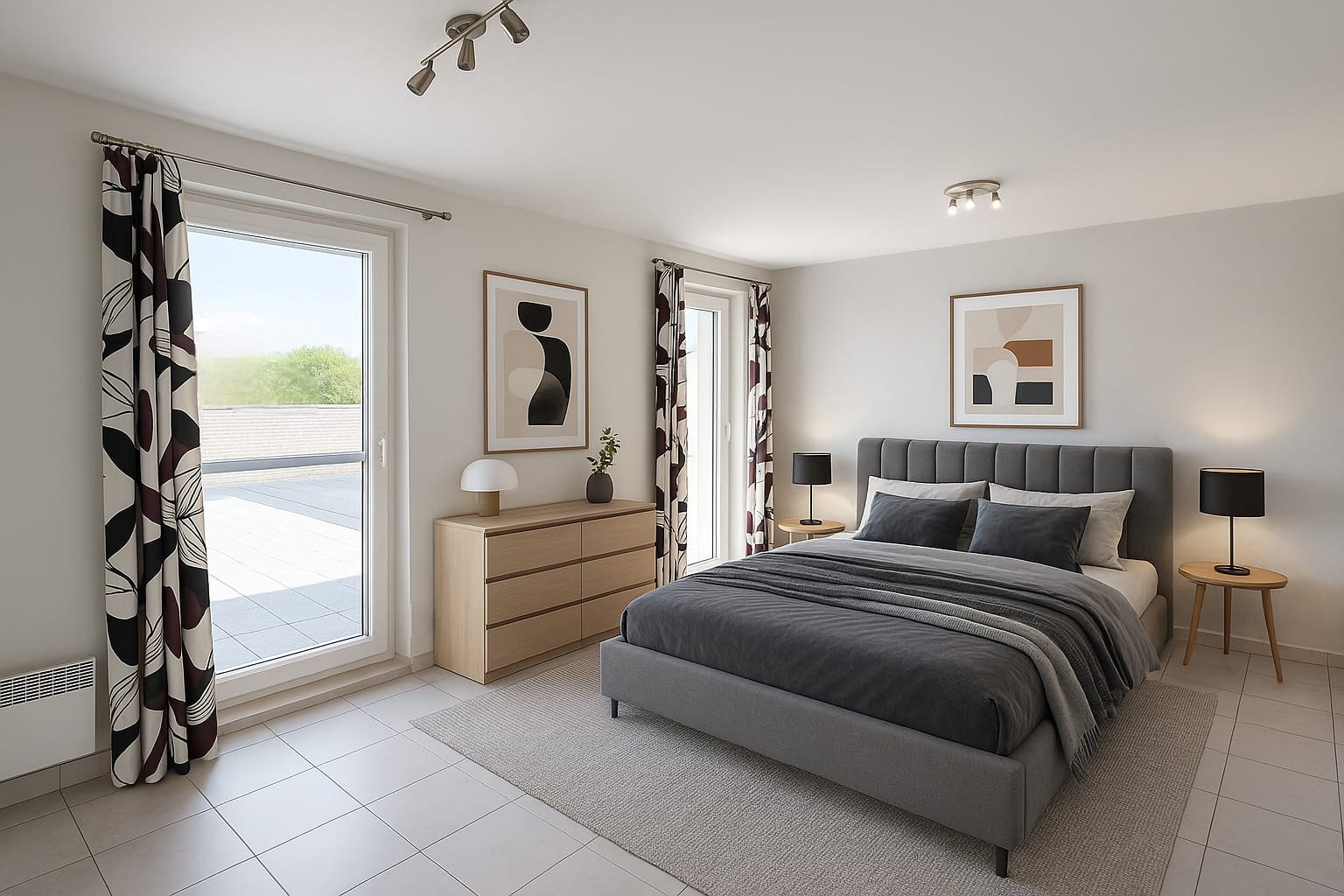 Het appartement beschikt over een ruime slaapkamer. Aan de achterzijde bevindt zich een tweede terras, zodat u de hele dag door van zon kan genieten. Daarnaast is er een badkamer voorzien van een lavabomeubel en een inloopdouche (wordt nog geplaatst).