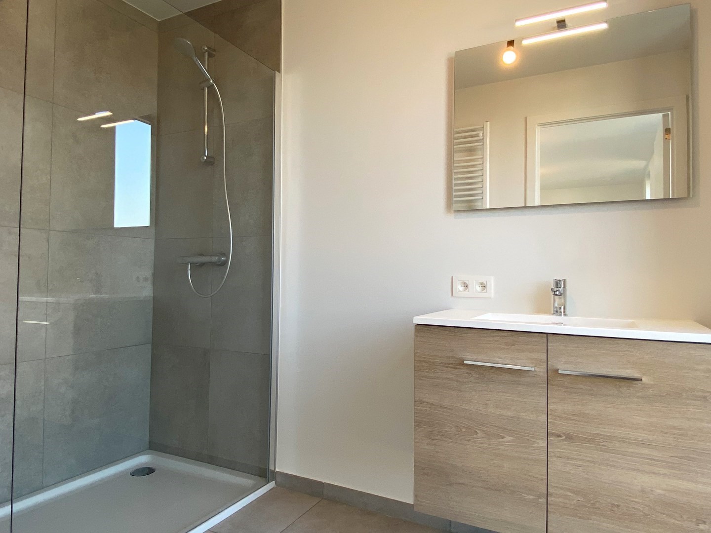 Verder is er de slaapkamer en een moderne badkamer met inloopdouche, lavabomeubel en wandradiator.