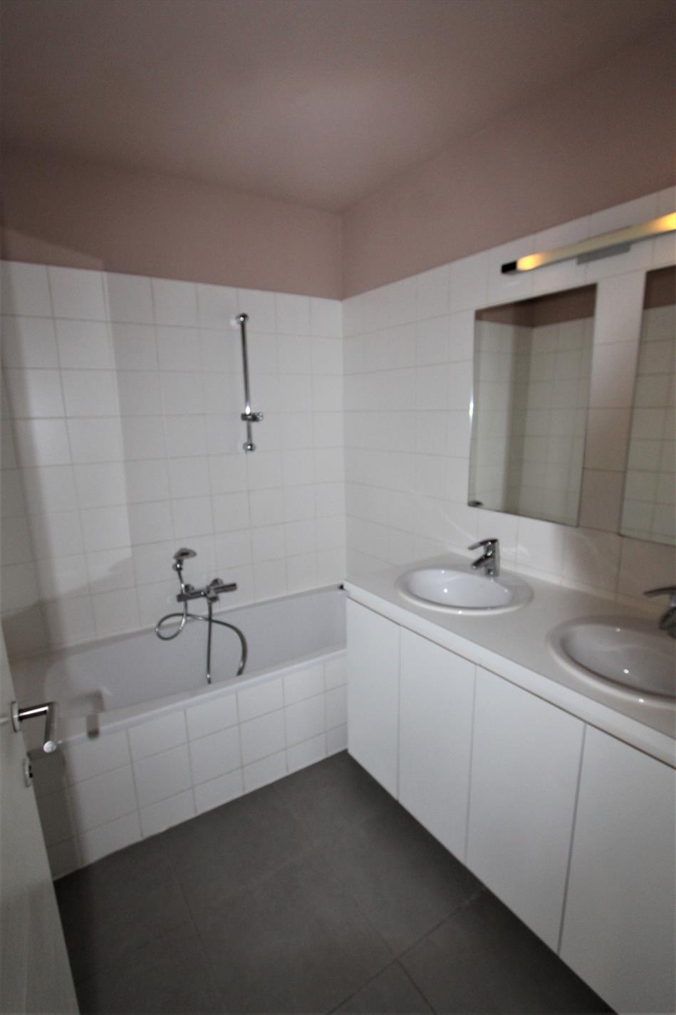 Verder omvat het appartement twee slaapkamers die beiden voorzien zijn van een inbouwkast. De badkamer is voorzien van een dubbelvoudige lavabo met meubel alsook een ligbad met doucheaansluiting. Tot slot is er ook nog de wasberging, een ondergrondse staanplaats en een ondergrondse kelderberging.