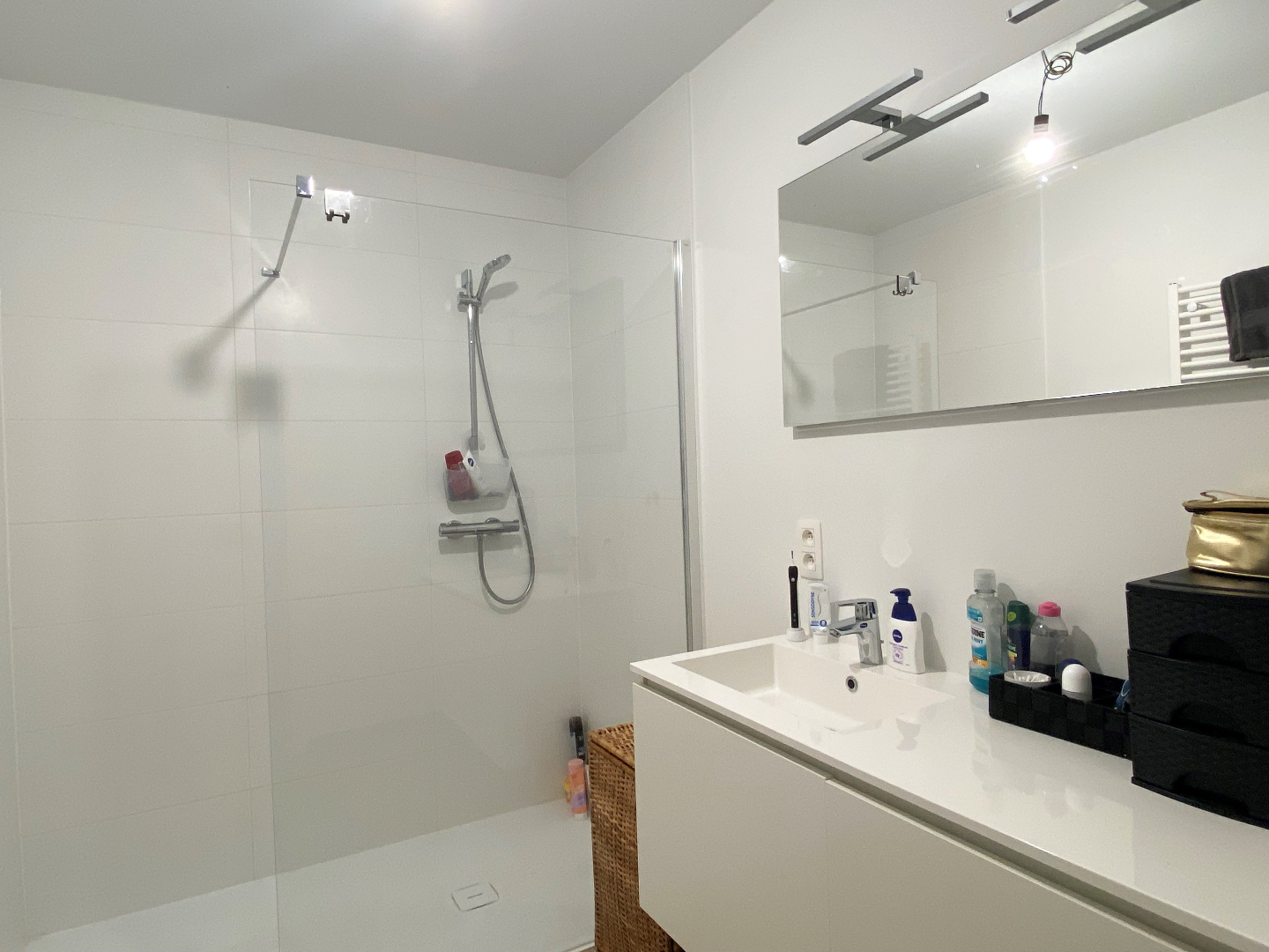 Verder is er de ruime slaapkamer ook voorzien van ingemaakte kasten en een moderne badkamer met inloopdouche, dubbele lavabo en wandradiator.