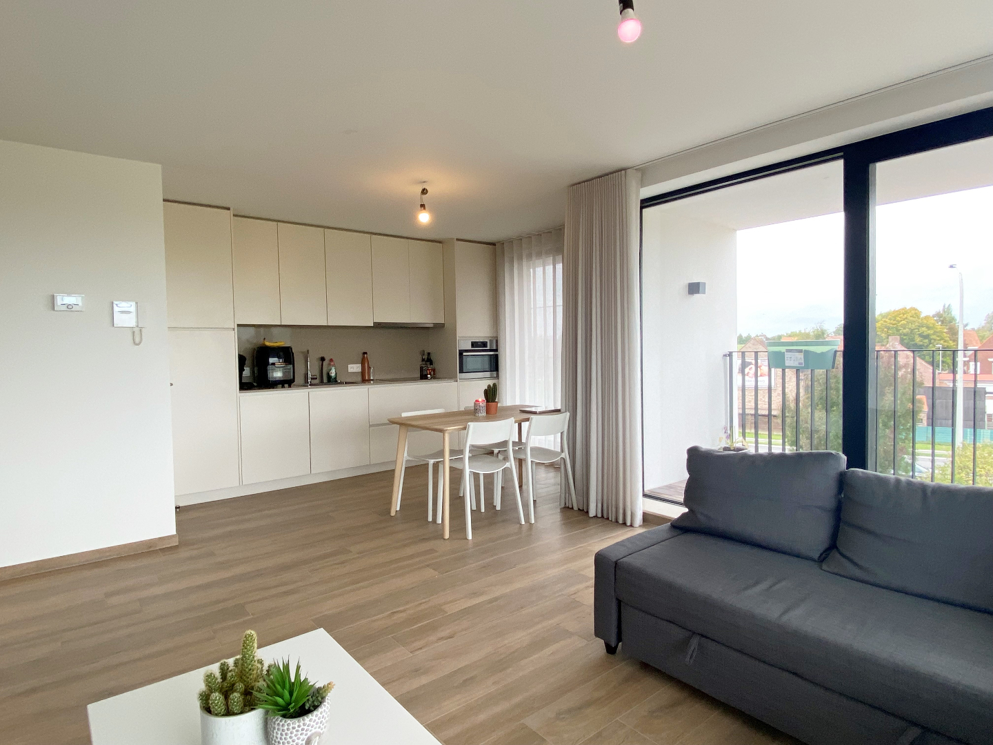 Dit instapklaar en energiezuinig nieuwbouwappartement van 69 m² met ruim en zonnig terras van 16 m² is praktisch gelegen nabij het centrum van Tielt.