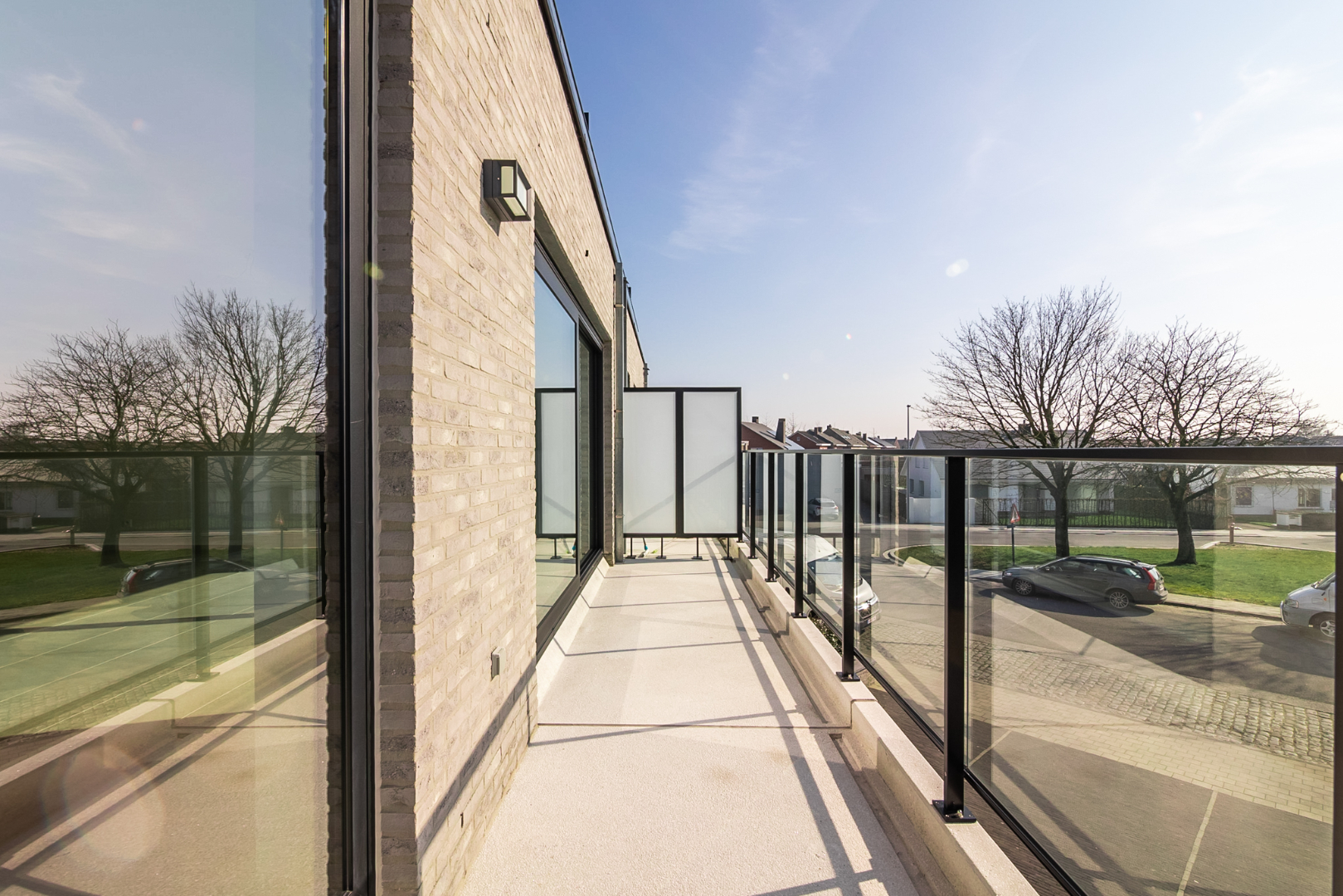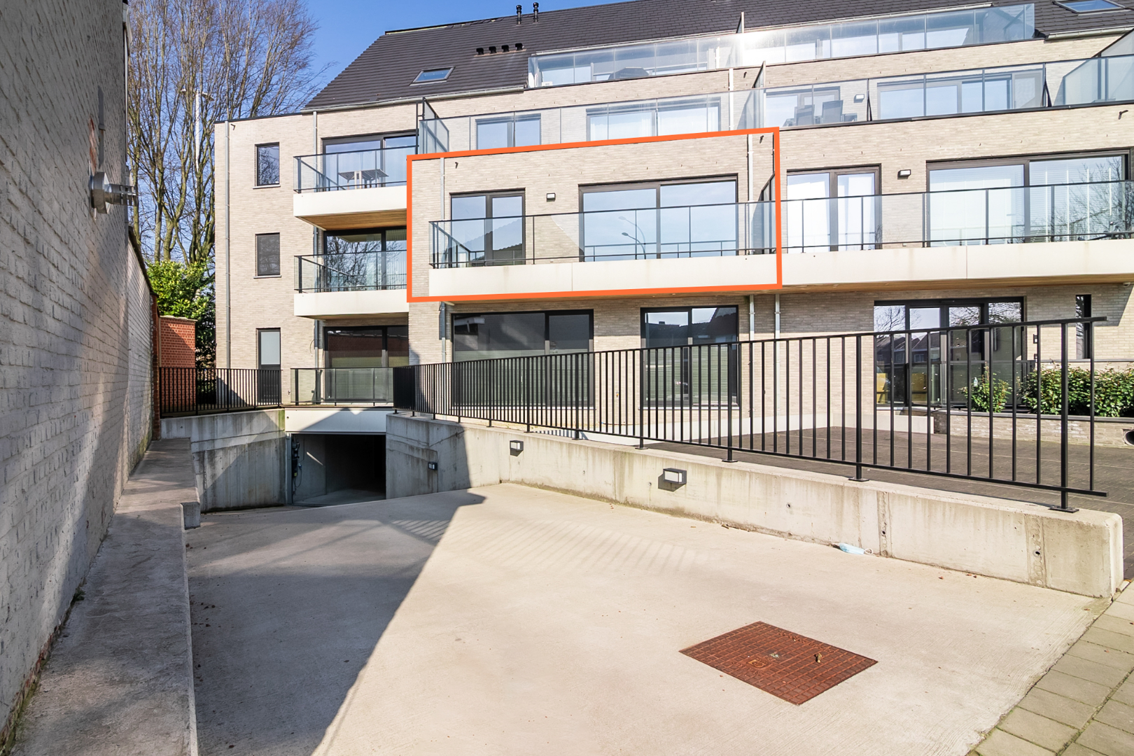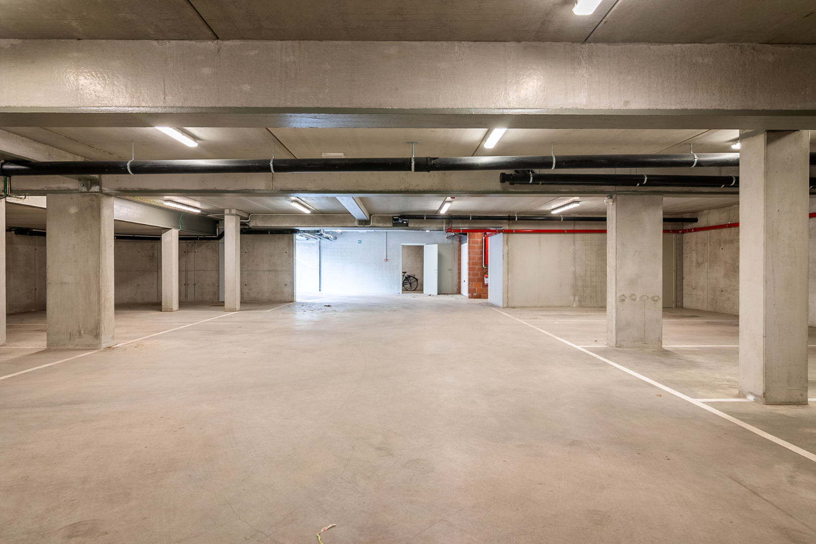 De eigendom is voorzien van een zonnig terras 11m². Er is tevens een ondergrondse staanplaats toegankelijk met een automatische poort en een private kelderberging, dit voor een maandelijks bedrag van 15 euro. Tevens is er ook een gemeenschappelijke fietsenberging.
