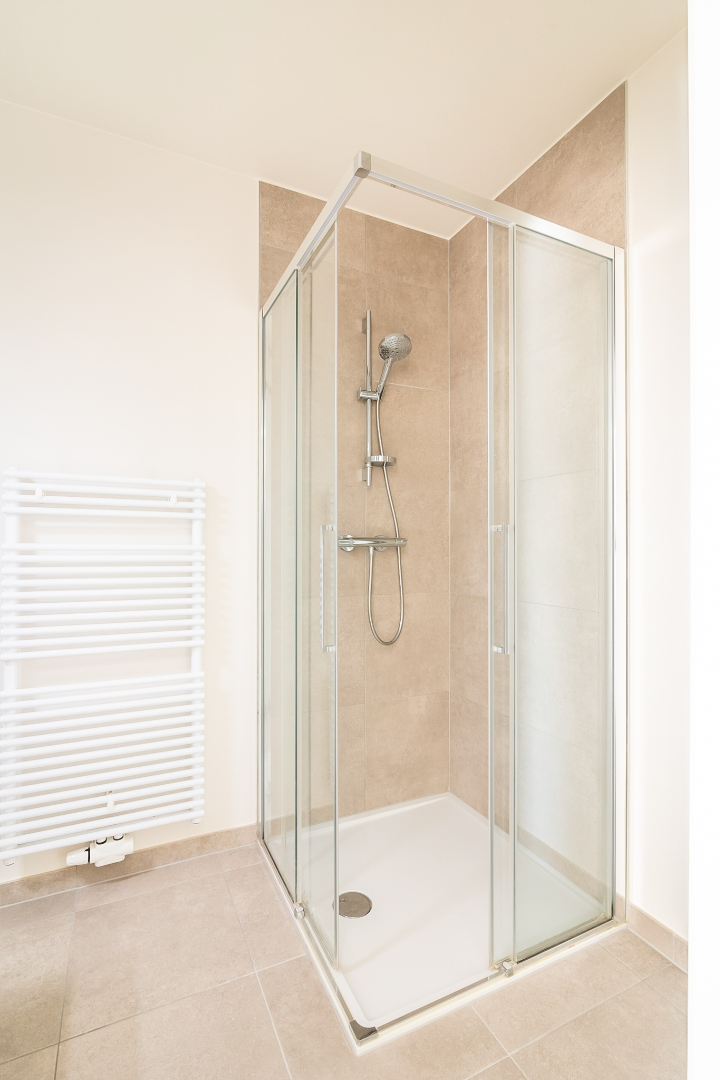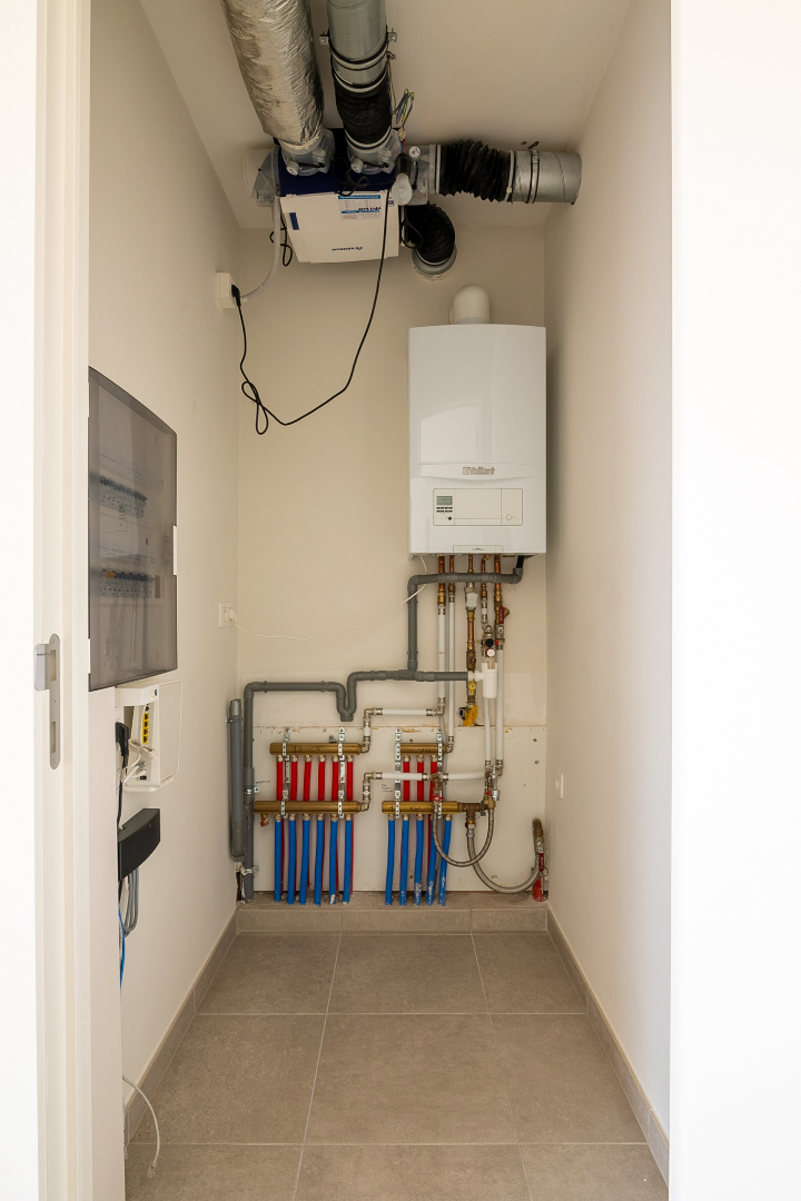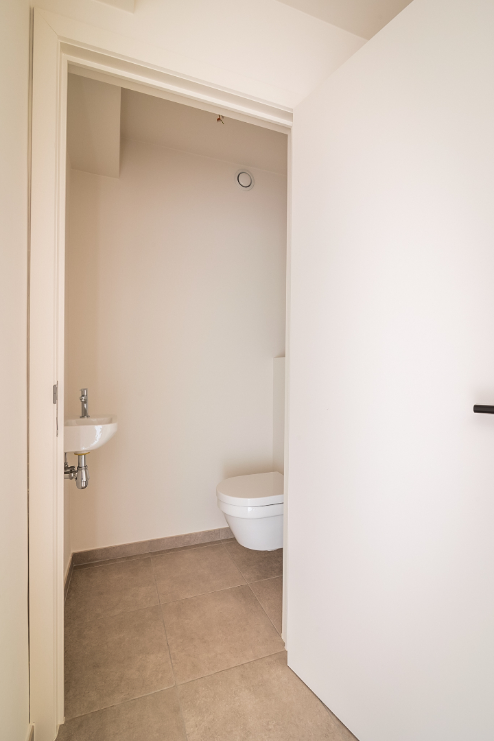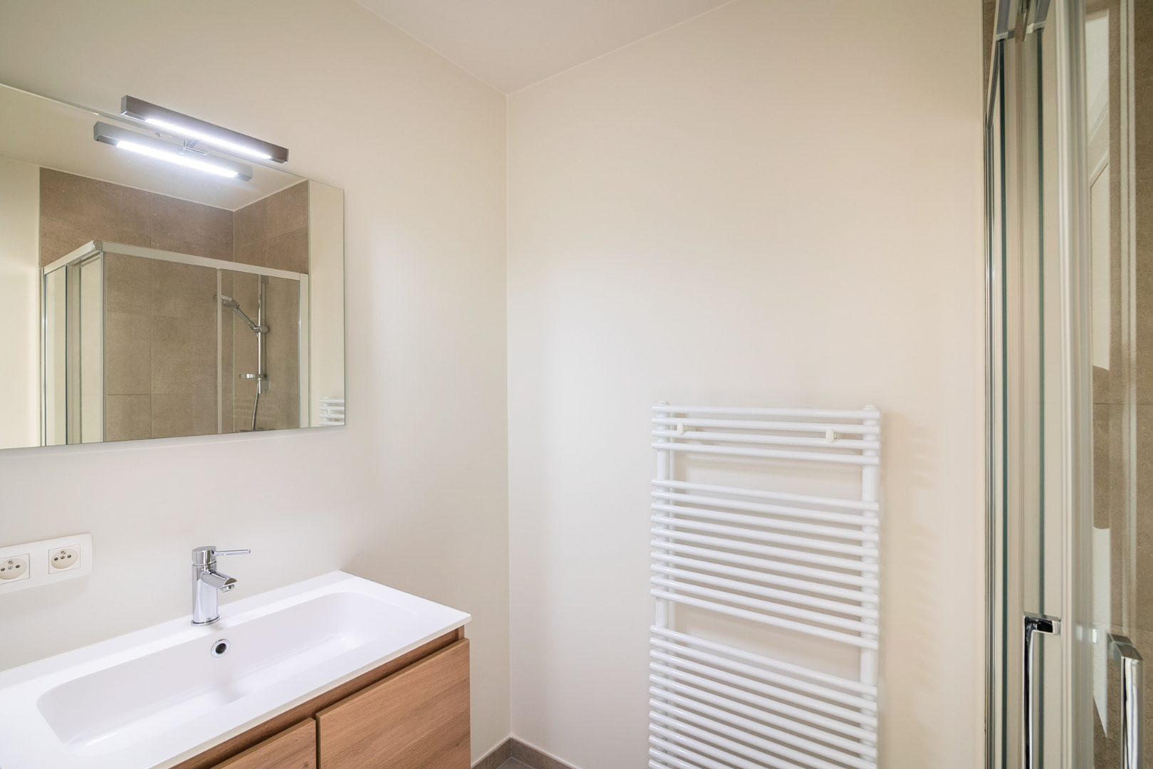 De eigendom is voorzien van een zonnig terras 11m². Er is tevens een ondergrondse staanplaats toegankelijk met een automatische poort en een private kelderberging, dit voor een maandelijks bedrag van 15 euro. Tevens is er ook een gemeenschappelijke fietsenberging.