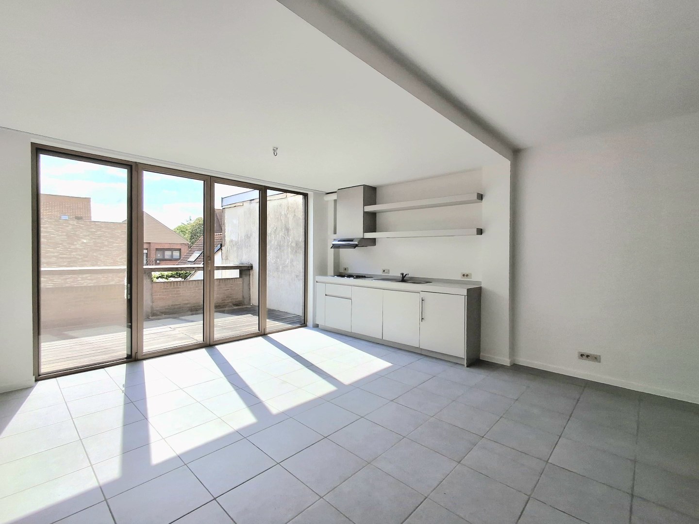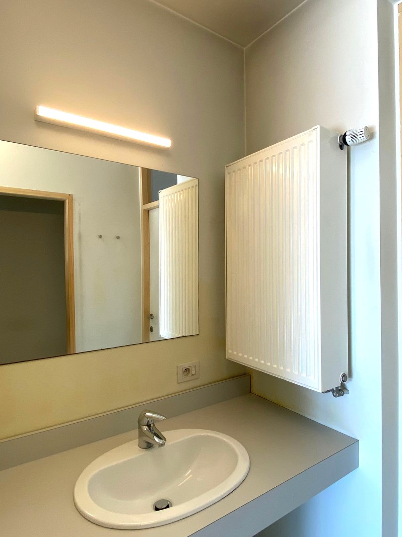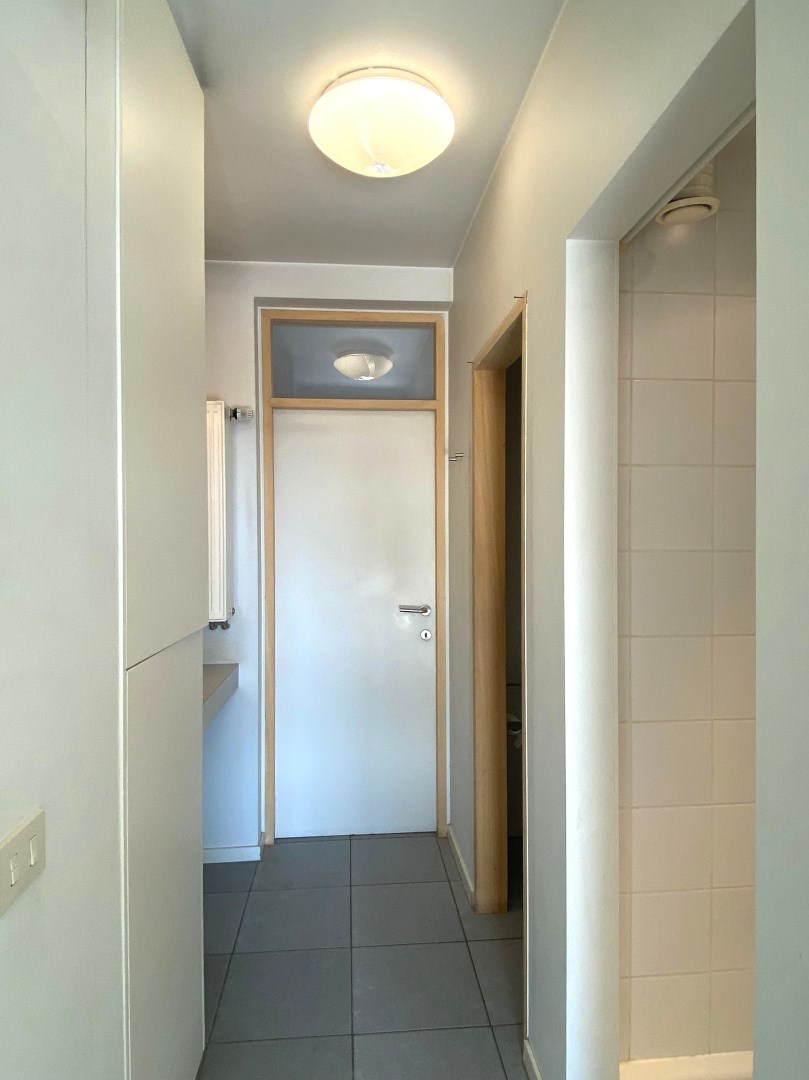 Dit appartement omvat leefruimte met een open keuken geïnstalleerd met een kookplaat, spoelbak en frigo. Via het dubbel opendraaiend raam kan u het ruim en zonnig terras betreden. Verder omvat het appartement een slaapkamer en een badkamer met lavabomeubel, douche en toilet. Tot slot is er nog een een privatieve berging en kelderberging. In de kelderberging is er aansluiting voor een wasmachine en droogkast.