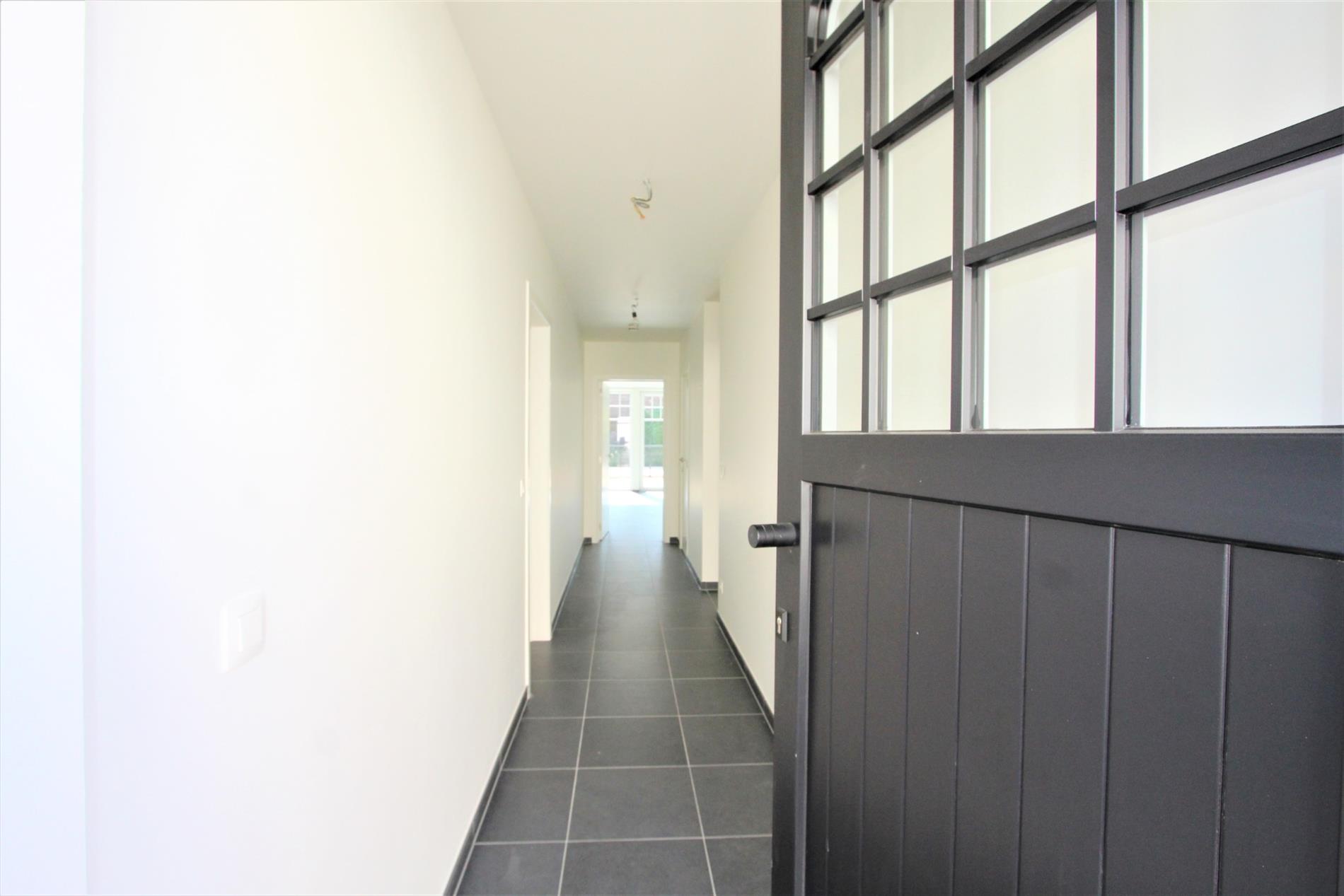 We komen binnen in de ruime inkomhal met ruimte voor een vestiaire en een apart gastentoilet. Via de inkom komen we binnen in de charmante ruime leefruimte met open ingerichte keuken (koelkast met vriesvak | vaatwasmachine | dubbele spoelbak | keramische kookplaat | dampkap | microgolf én oven). De leefruimte is voorzien van grote raampartijen die voor veel natuurlijk lichtinval zorgen alsook een prachtig zicht op het ruime zonneterras. De tuin wordt verder afgewerkt met gras.