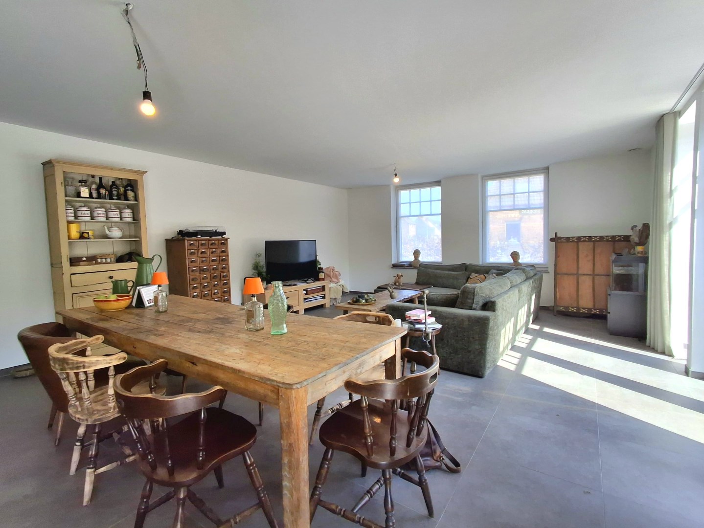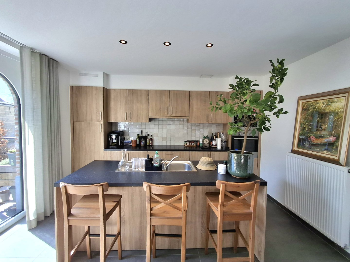 We komen binnen in de ruime inkomhal met ruimte voor een vestiaire en een apart gastentoilet. Via de inkom komen we binnen in de charmante ruime leefruimte met open ingerichte keuken (koelkast met vriesvak | vaatwasmachine | dubbele spoelbak | keramische kookplaat | dampkap | microgolf én oven). De leefruimte is voorzien van grote raampartijen die voor veel natuurlijk lichtinval zorgen alsook een prachtig zicht op het ruime zonneterras. De tuin wordt verder afgewerkt met gras.