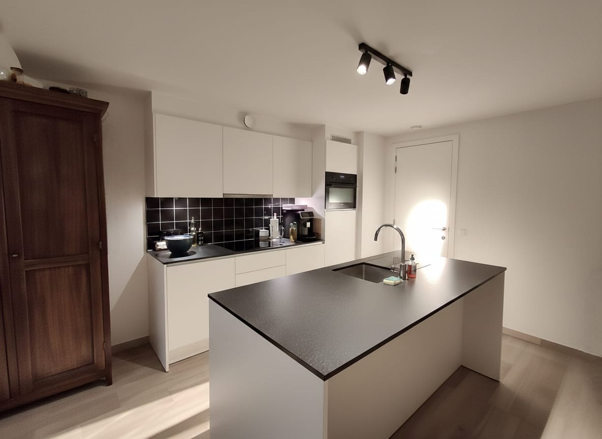 U komt binnen via de inkomhal die uitmondt in een ruime, lichtrijke leefruimte met grote ramen, wat zorgt voor een warme en elegante lichtinval. De moderne open keuken is volledig uitgerust en voorzien van een natuurstenen werkblad, inductiekookplaat met dampkap, combi-oven, koelkast, vaatwasser en spoelbak. Via de leefruimte geniet u directe toegang tot het aangename terras — de ideale plek om in alle rust te ontspannen.