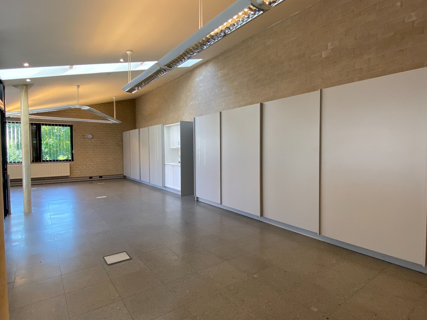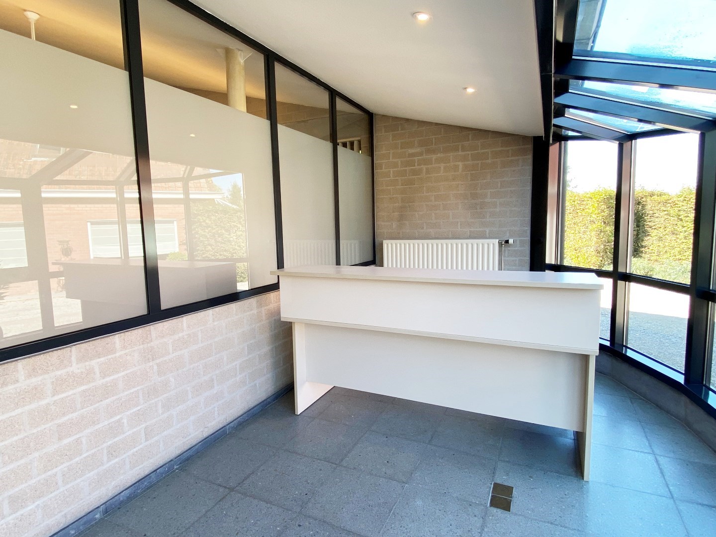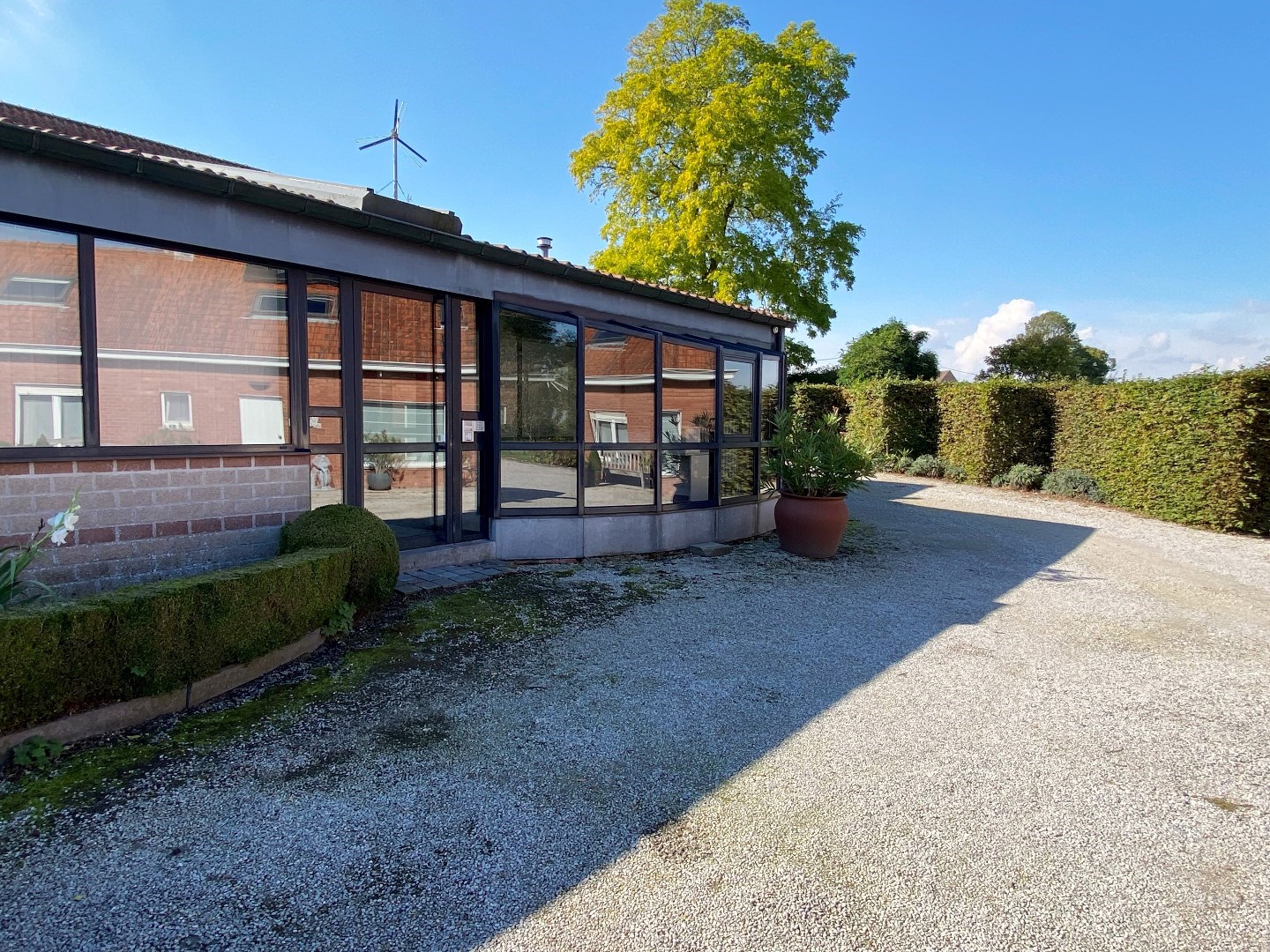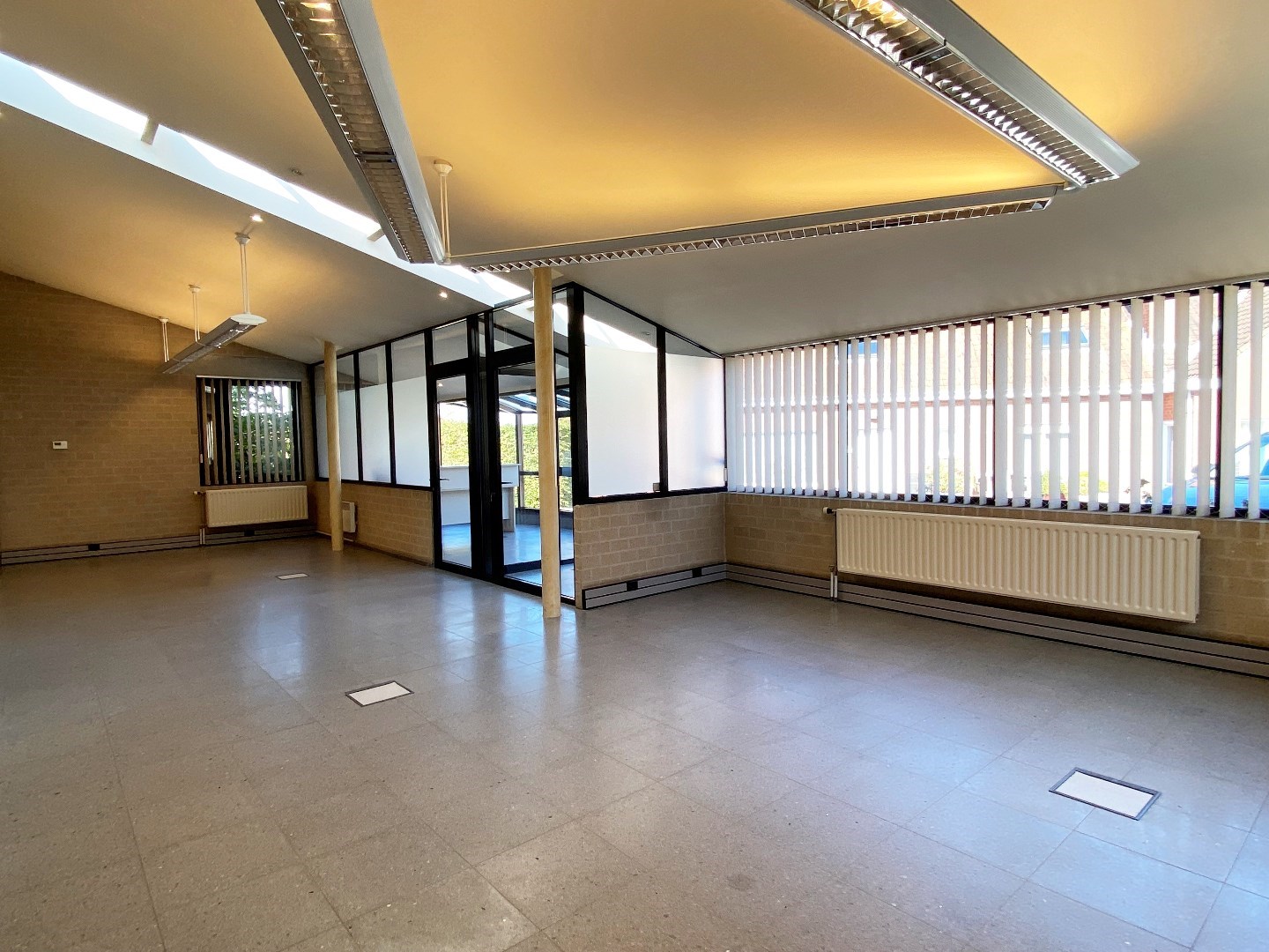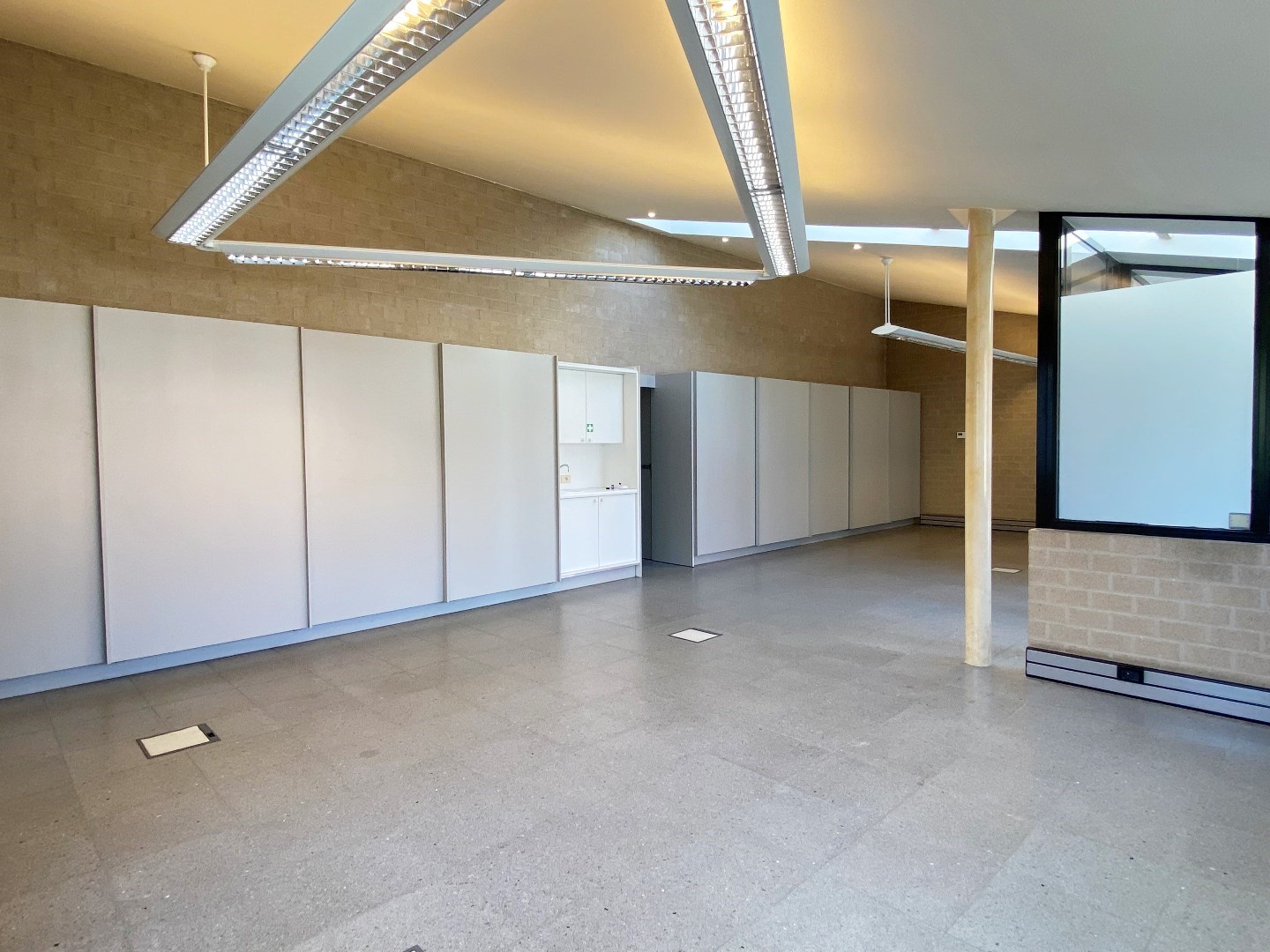 Deze ruimte is voorzien van verwarming op aardgas (deelteller) alsook is er verlichting en zonnewering aanwezig (met lamellen). Er zijn ook inbouwkasten waar gebruik van kan gemaakt worden. Verder is er ook een sanitaire ruimte met toilet en lavabo. Tot slot is er ook een kleine bijkeuken.