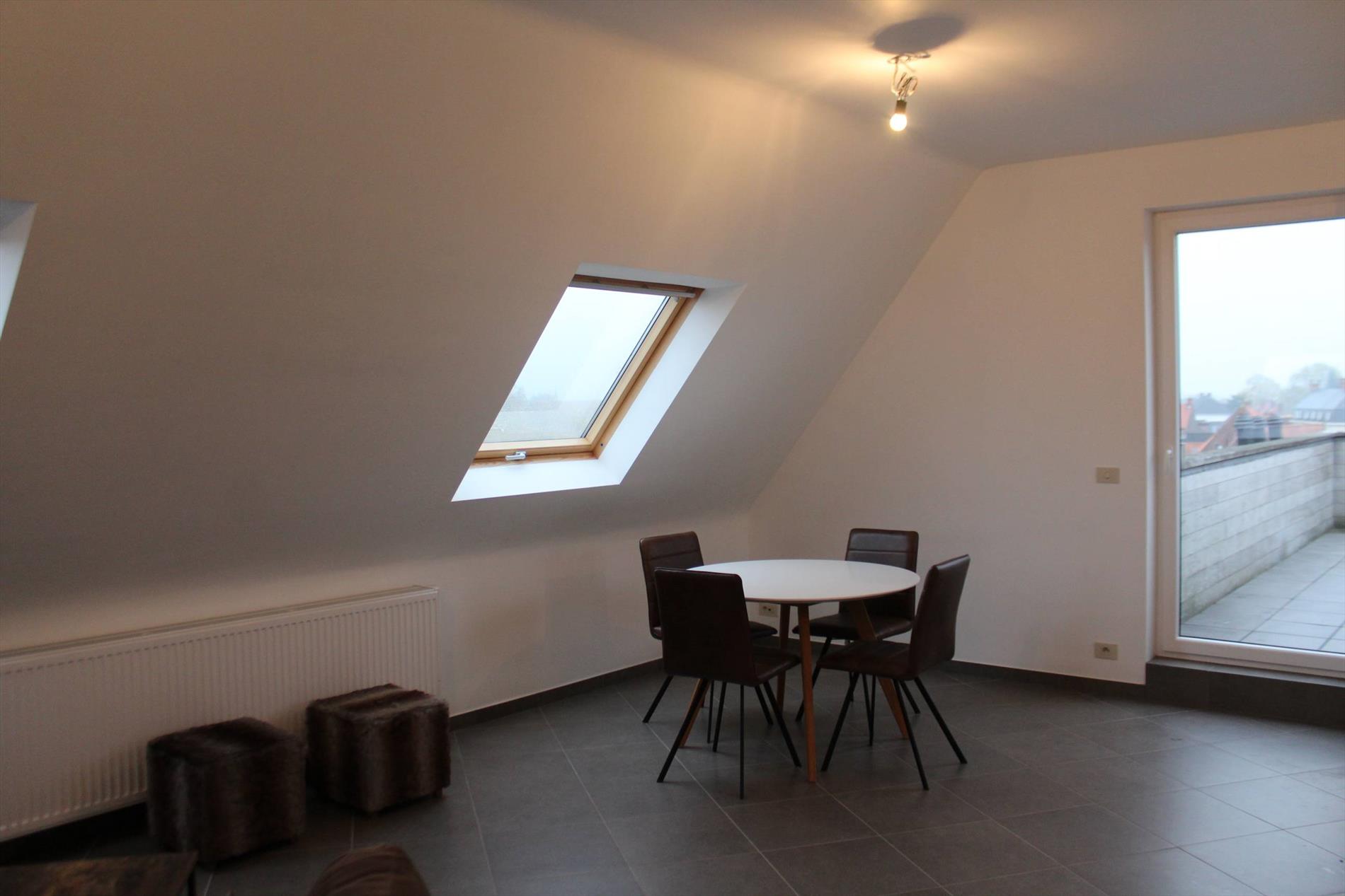 QUASI NIEUW, INSTAPKLAAR en LICHTRIJK dakappartement te huur in het hartje van Ardooie. Ideaal gelegen, vlot bereikbaar via verschillende toegangswegen. Het appartement is gelegen op de vierde verdieping. Hierdoor is het verdiep volledig van U! Door de aanwezigheid van een hoog plafond en veel ramen is dit appartement zéér lichtrijk. Omvat een inkom met apart gastentoilet, lichtrijke leefruimte met open ingerichte keuken en toegang tot het zongerichte terras. De keuken is voorzien van alle comfort en bestaat uit vaatwas, koelkast, kookplaat, combi microgolf-oven en dubbele spoelbak. De keuken biedt aansluiting naar de ruime berging. Verder geniet het appartement van 2 slaapkamers en een badkamer met ligbad en dubbele lavabo. HEEL GOED GEÏSOLEERD DUS ENERGIEZUINIG! Er is ook de mogelijkheid om een ONDERGRONDSE staanplaats te huren.