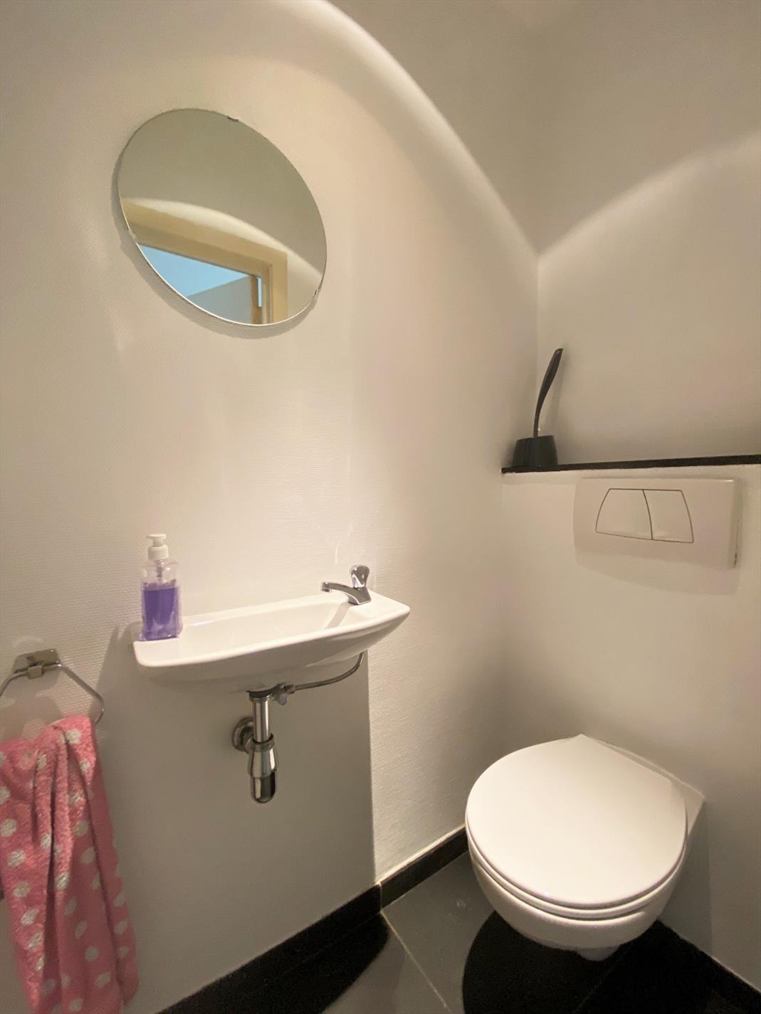 Verder beschikt het appartement over 2 slaapkamers (1 grote en 1 kleine), een badkamer met lavabo en douche (aansluiting voor wasmachine + plaats voor droogkast). Een apart gastentoilet.