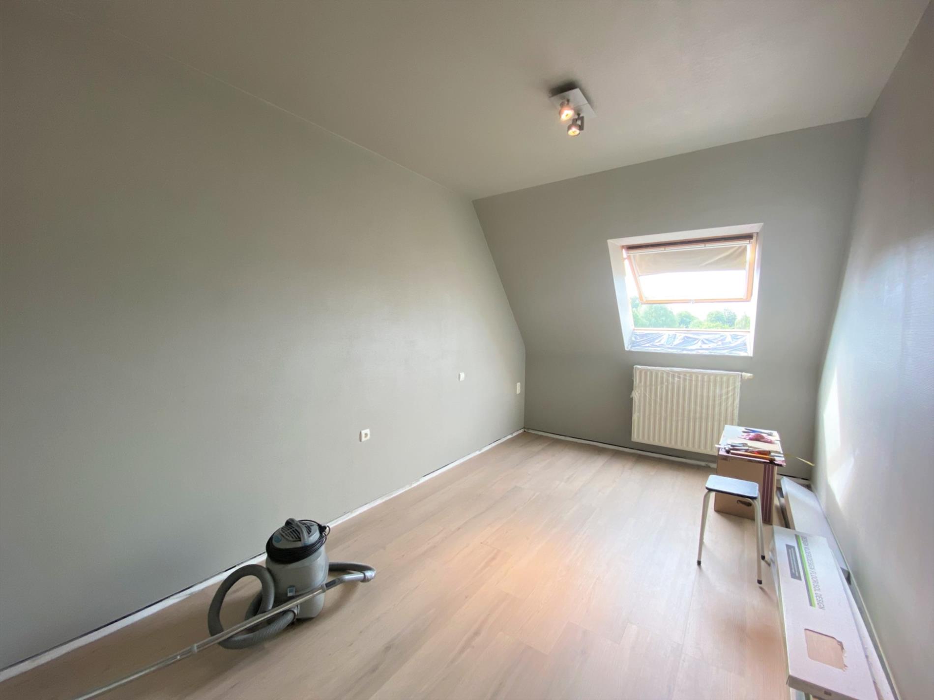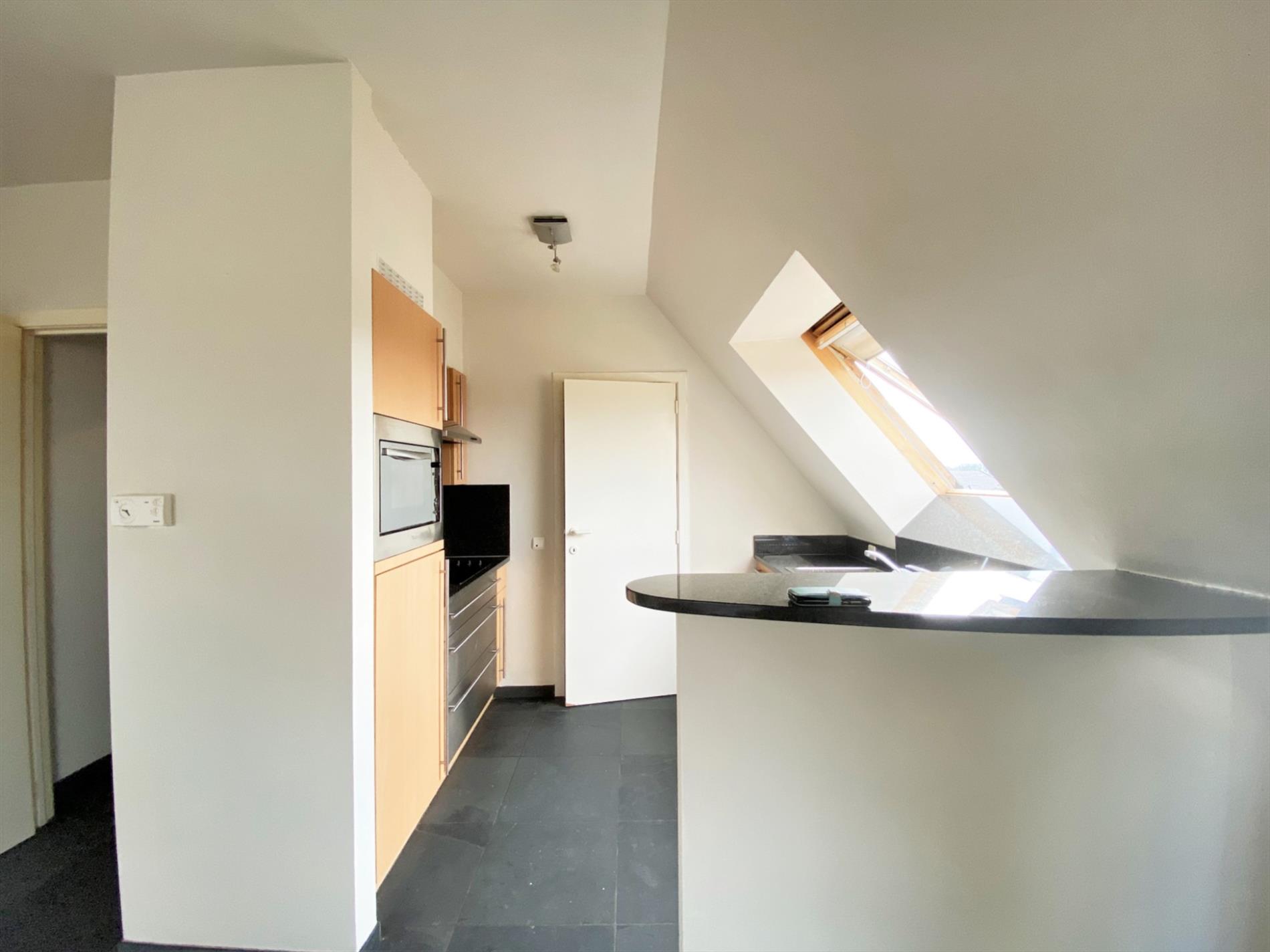 Het dakappartement is gelegen op de 3de verdieping EN werd volledig HERSCHILDERD! U komt binnen via de inkomhal, deze omvat een ruime vestiairekast. Aansluitend is de lichtrijke leefruimte met open ingerichte keuken (microgolfoven, elektrische kookplaat, dampkap en spoelbak). Naast de keuken bevindt zich de praktische berging (aansluiting voor vaatwasmachine of wasmachine). Via de woonkamer kan u het balkon betreden.
