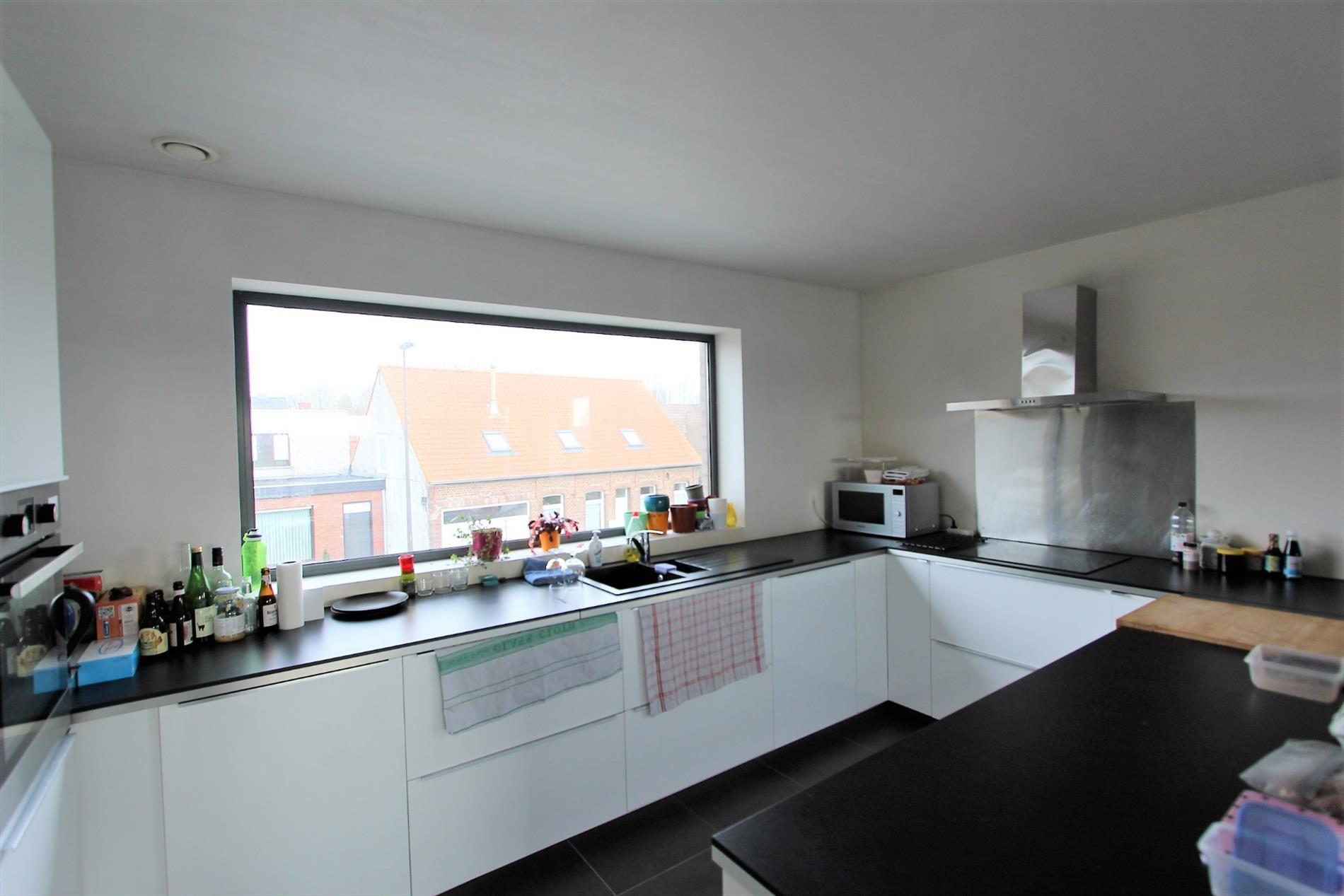 Het appartement is gelegen op het eerste verdiep en bevat een ruime inkomhal met plaats voor een vestiaire, een gastentoilet, een open ruime woonkamer met plaats voor een eethoek en een zithoek. Aansluitend is de open ingerichte keuken. De keuken is voorzien van een spoelbak - keramische kookplaat - dampkap - oven - koelkast - vaatwas en een diepvries. Een berging/wasplaats alsook een ruim zongericht terras met open zicht maakt van dit eerste verdiep een totaal plaatje!