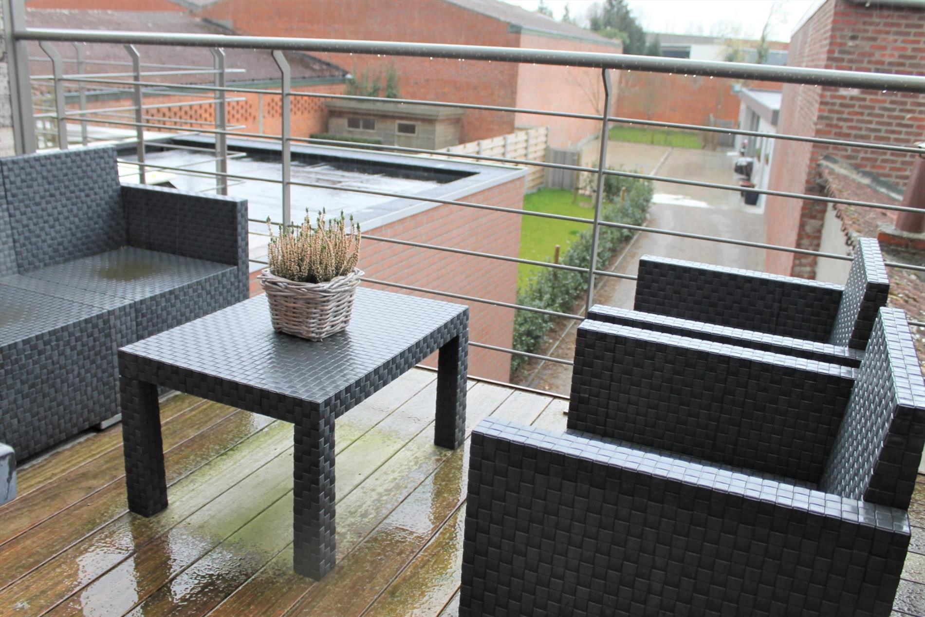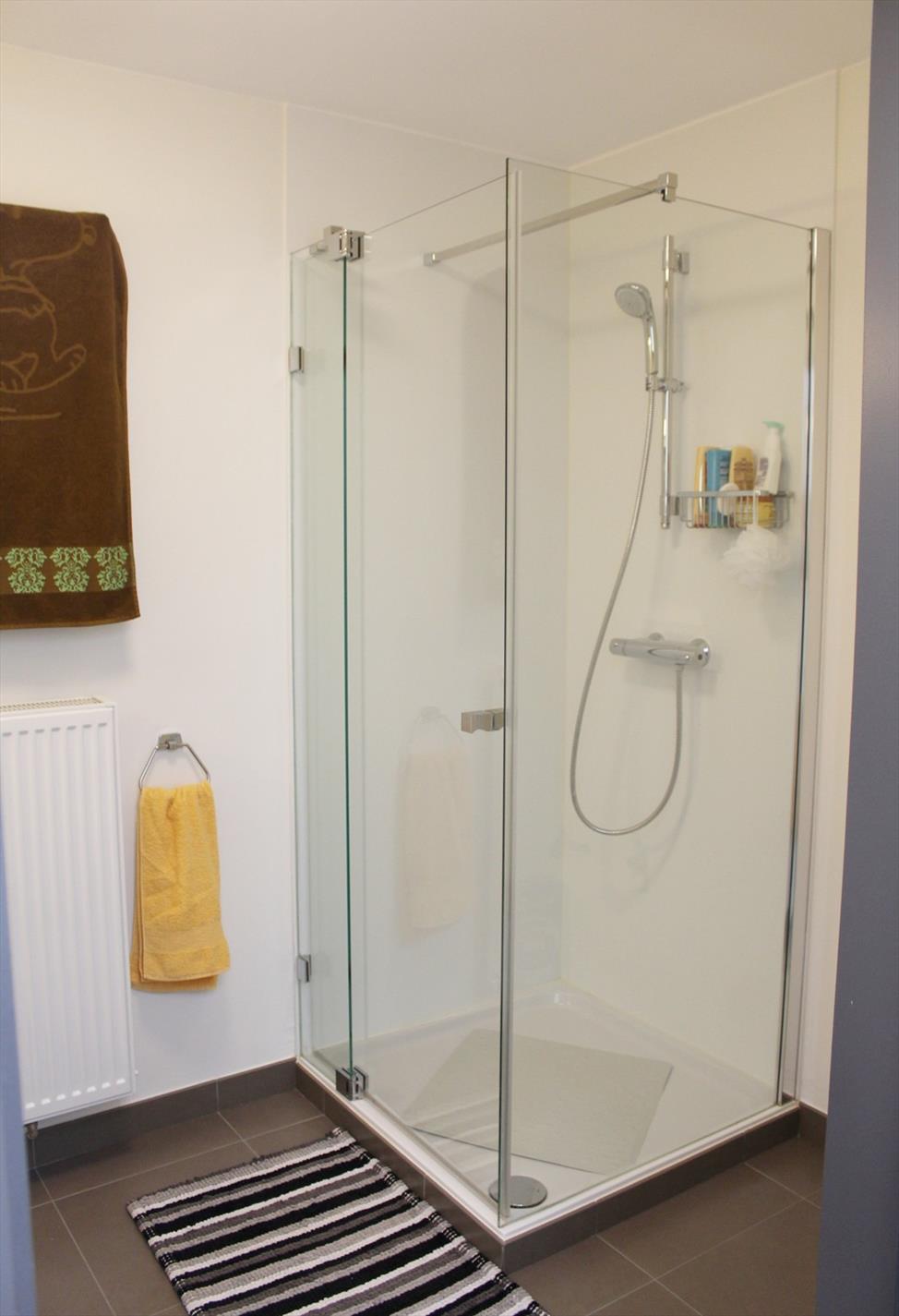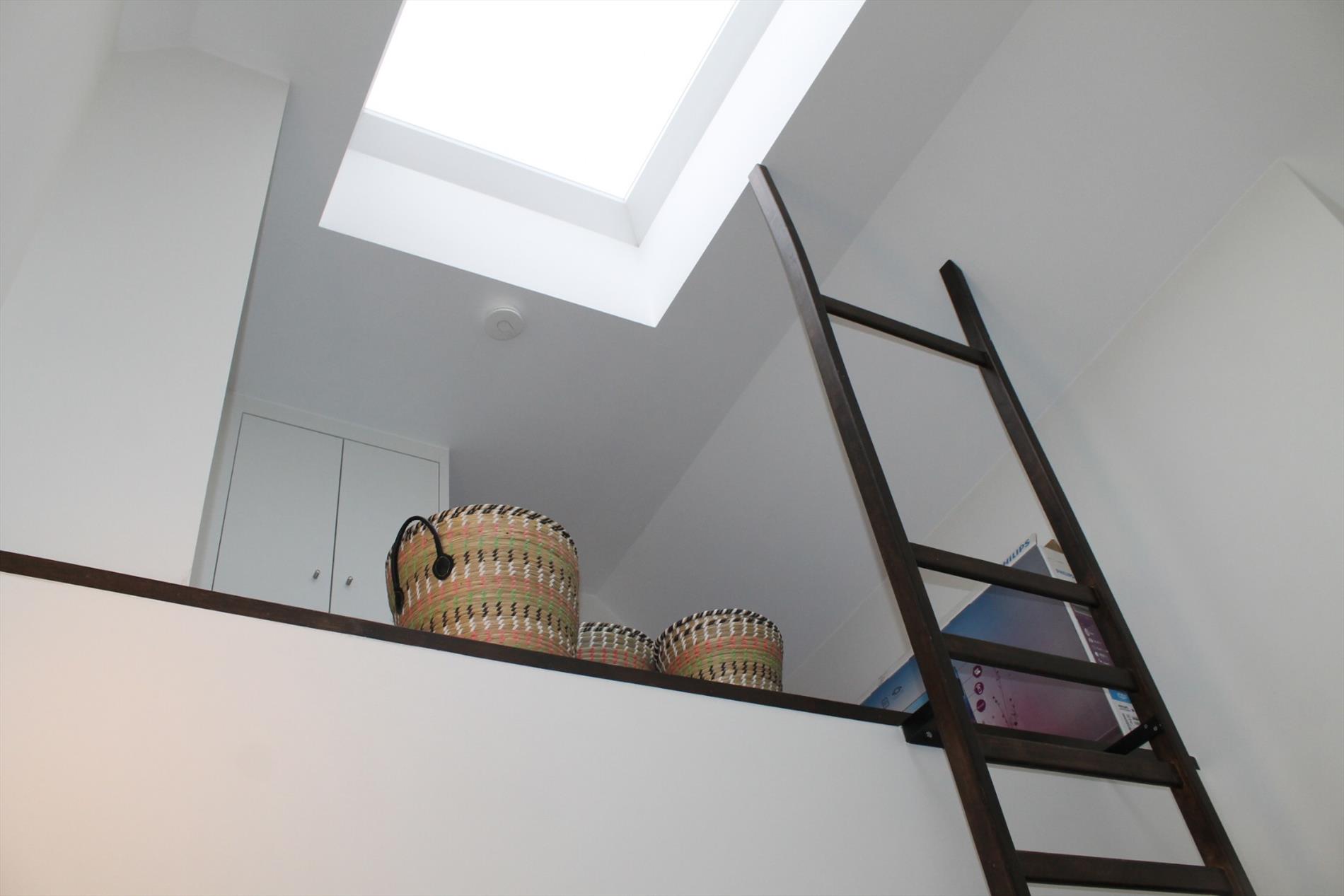 Het eerste verdiep biedt ook nog een eetplaats en woonkamer. Het verdiep telt 2 ruime slaapkamers + mezzanine en een ingerichte badkamer (lavabo, douche, aansluiting wasmachine/droogkast),