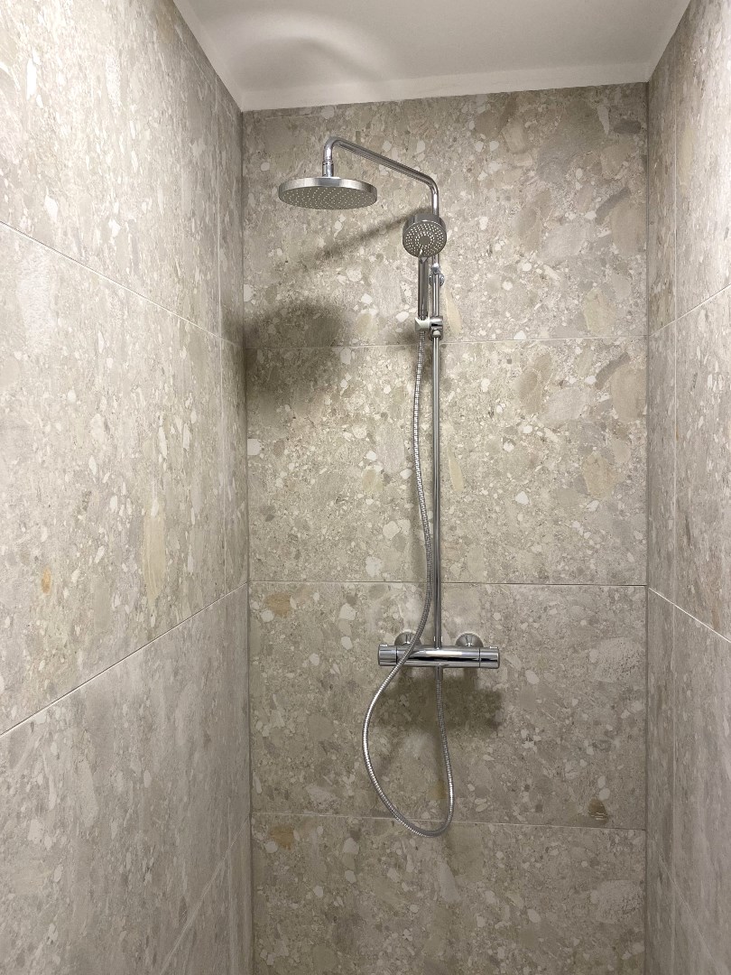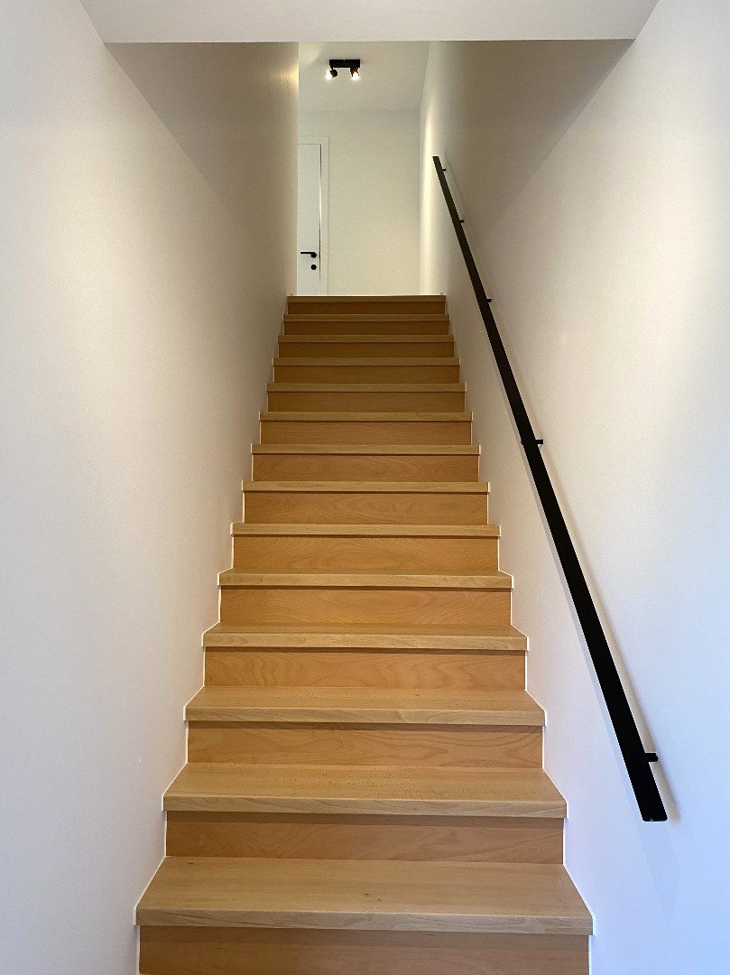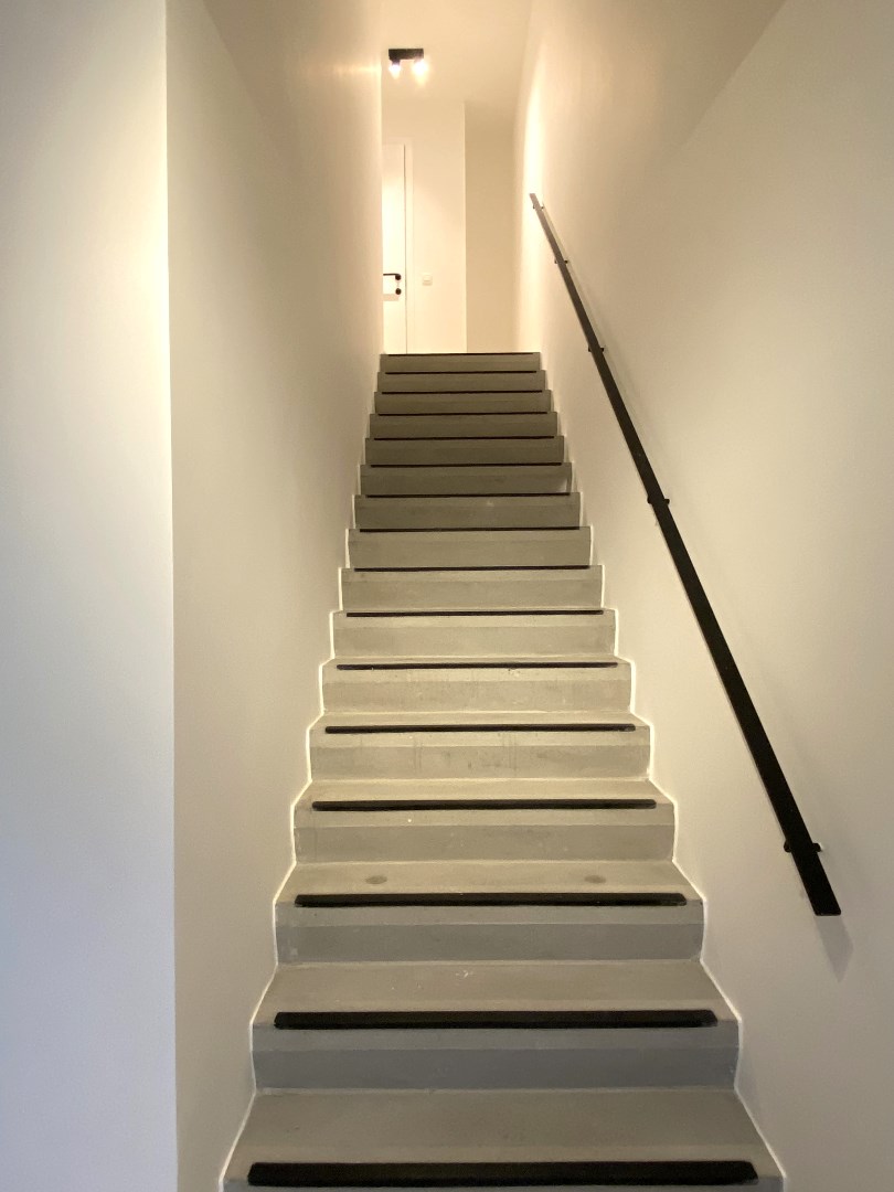 Op het verdiep omvat het appartement 3 slaapkamers, toilet en een badkamer. De badkamer is voorzien van een inloopdouche, een ligbad en lavabo met meubel.