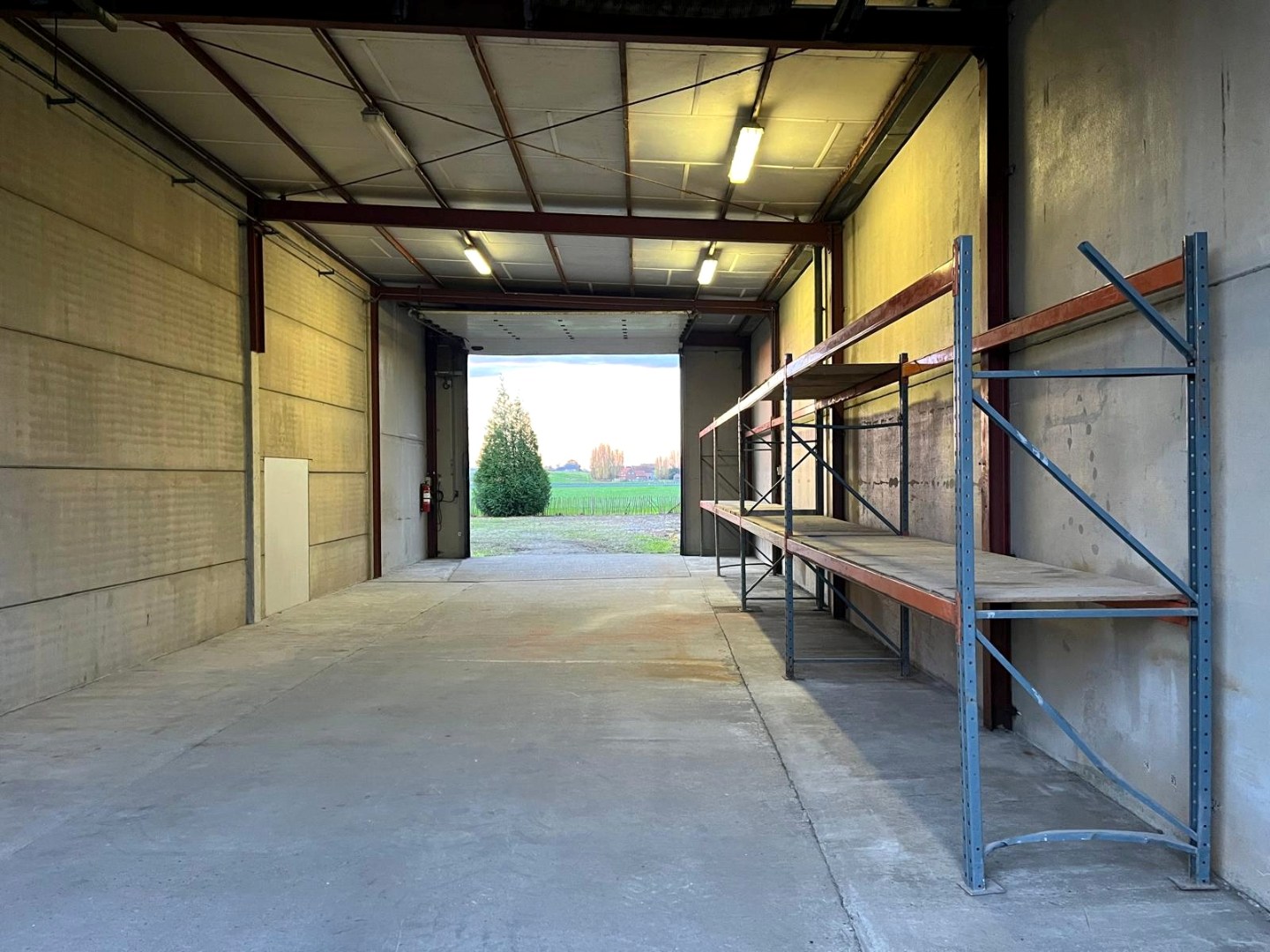 De loods heeft een oppervlakte van 137 m². Er zijn 2 elektrische sectionale poorten voorzien met een hoogte van 4,5 m. Via de loods is er een doorgang naar het achterliggend terrein (546 m²). Het terrein is ideaal voor het stockeren van materialen of werktuigen.