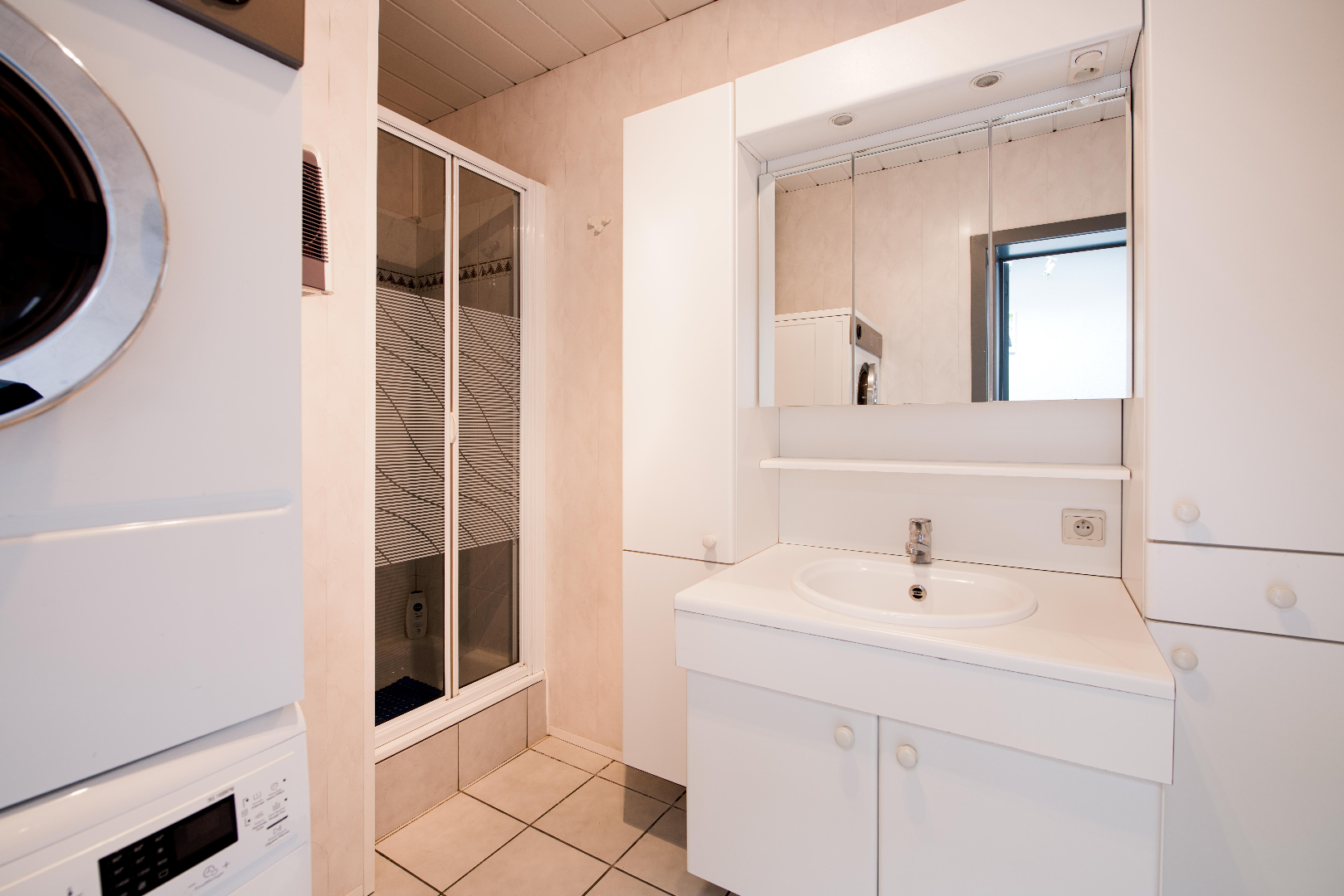 Verder is er de badkamer (douche | lavabo met meubel | aansluitingen wasmachine en droogkast) met recente doorstromer (aardgas | 2019). Als laatste is er het apart toilet.