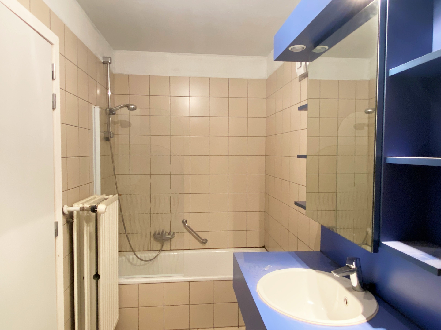 U komt binnen in de inkomhal die toegang verleent tot de leefruimte en het apart toilet. De leefruimte werd volledig geschilderd. De open keuken is volledig vernieuwd en omvat alle toestellen (koelkast | combi-oven | keramische kookplaat | dampkap | vaatwasser | enkele spoelbak). Naast de keuken bevindt zich een praktische berging. Verder omvat de studio 1 slaapkamer en een badkamer met ligbad en lavabomeubel. In de badkamer is er aansluiting voor een wasmachine!