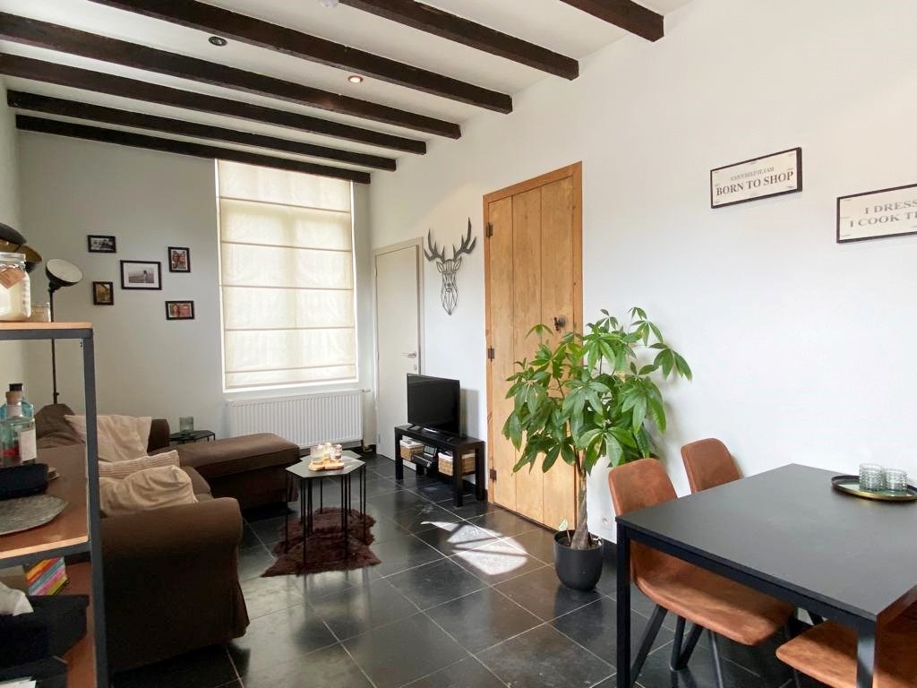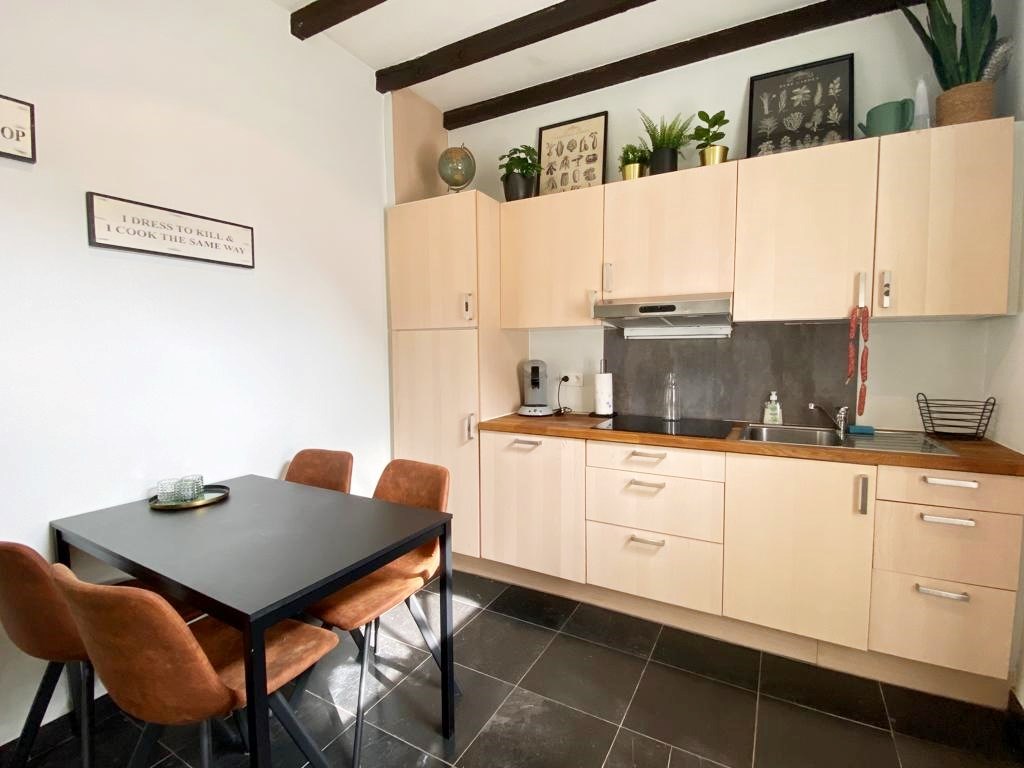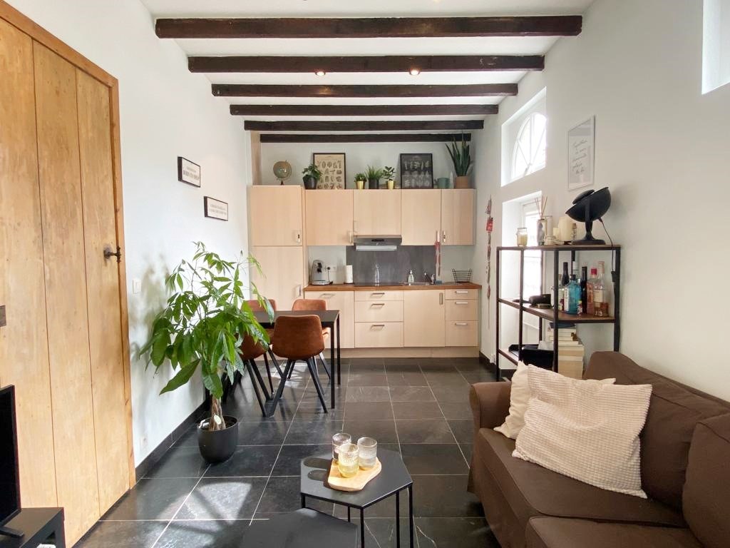 Deze gezellige studio omvat een leefruimte met aansluitend de keuken. Keuken bestaat uit een spoelbak, kookplaat, dampkap, vaatwasser en een koelkast, (geen oven). Op het gelijkvloers is er verder een toilet met lavabo en een wasmachine aansluiting terug te vinden. Met een vaste trap kom je op het eerste verdiep. Het verdiep telt één slaapkamer met aansluitend de vernieuwde badkamer (douche - lavabo)