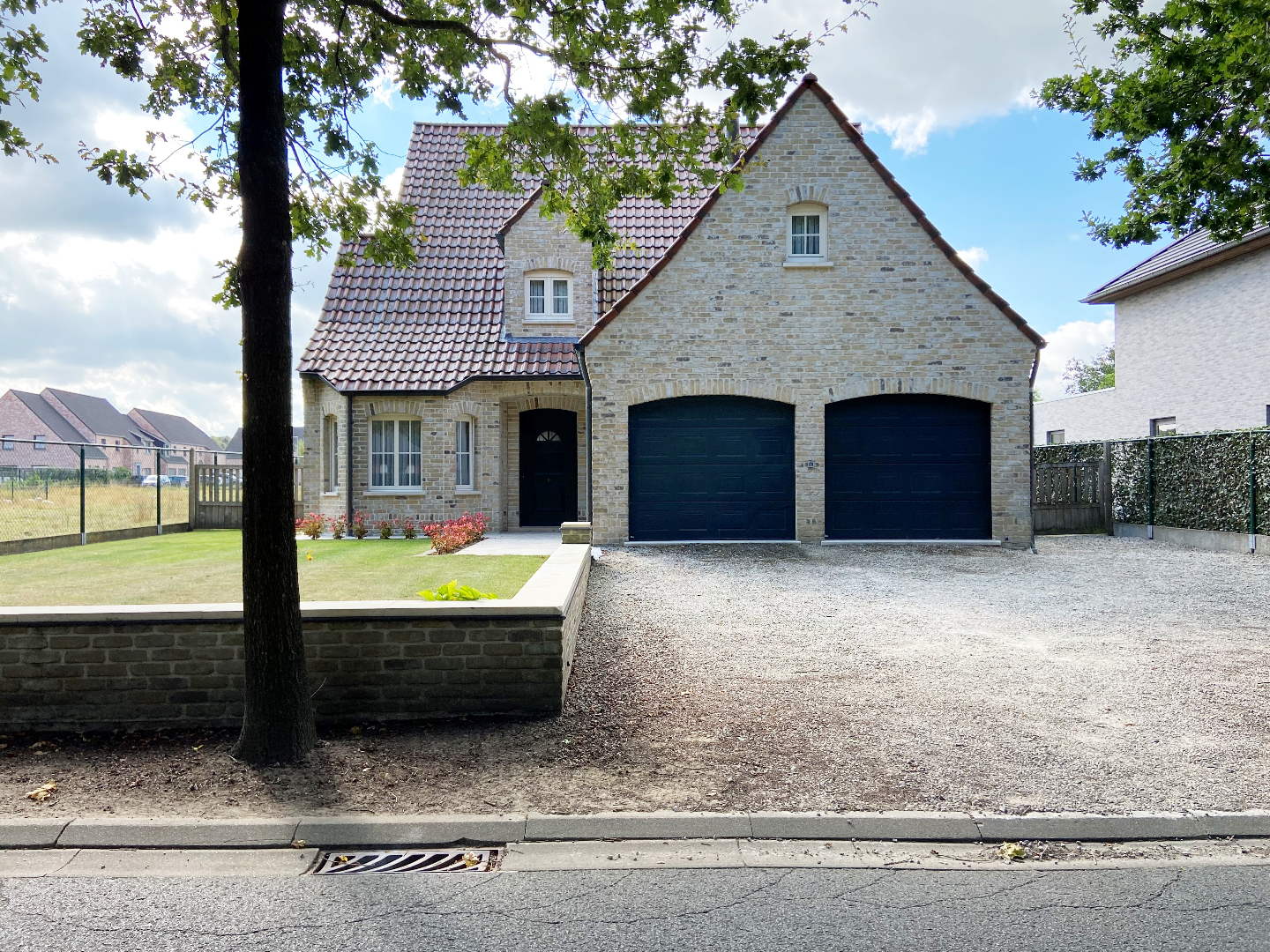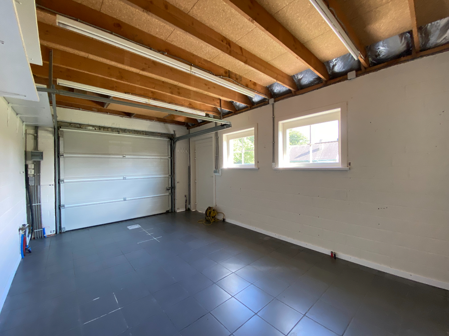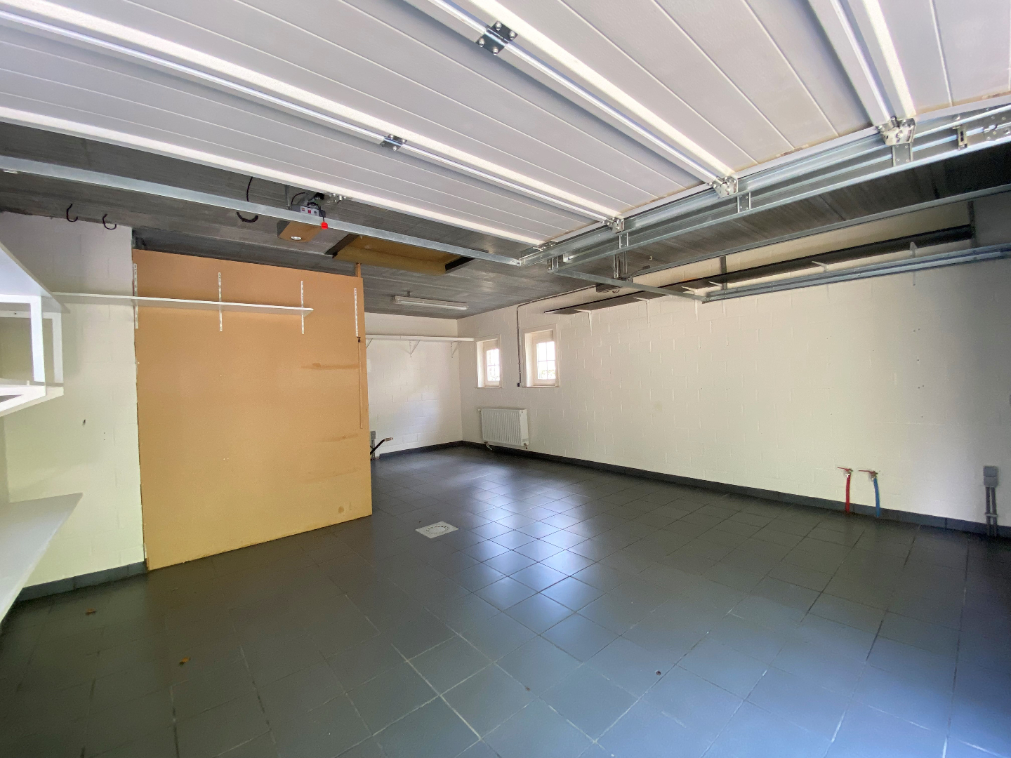Op het gelijkvloers is er ook een dubbele garage met automatische sectionaalpoorten te bedienen via het code klavier en afstandsbediening.