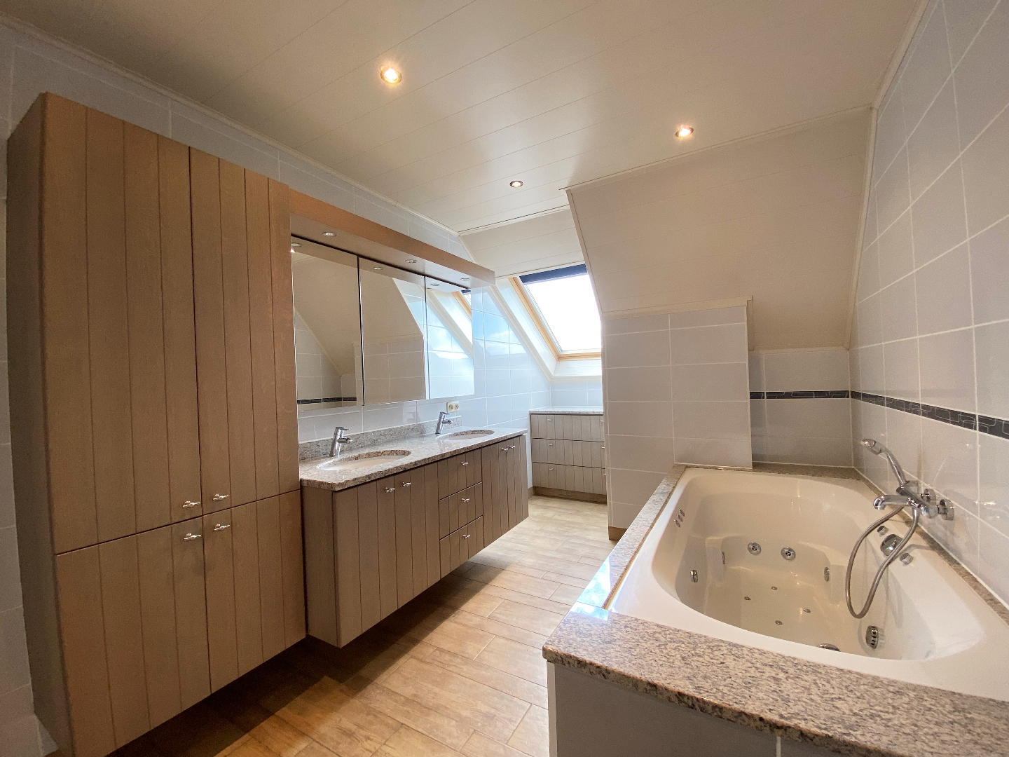 Op de 1ste verdieping bevinden zich 3 ruime slaapkamers waarvan één slaapkamer beschikt over een dressingruimte met ingemaakte kasten. De badkamer is voorzien van een lig/bubbelbad, lavabomeubel, toilet en extra kastruimte.