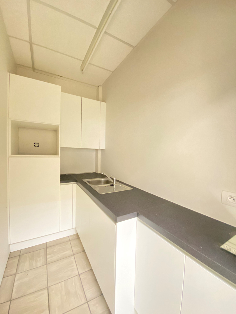 Via een vast trap komt u terecht op het verdiep. Deze ruimte kan perfect dienen als kantoorruimte of opbergruimte. Hier werd een gasaansluiting voorzien. Verwarming moet u zelf nog installeren.