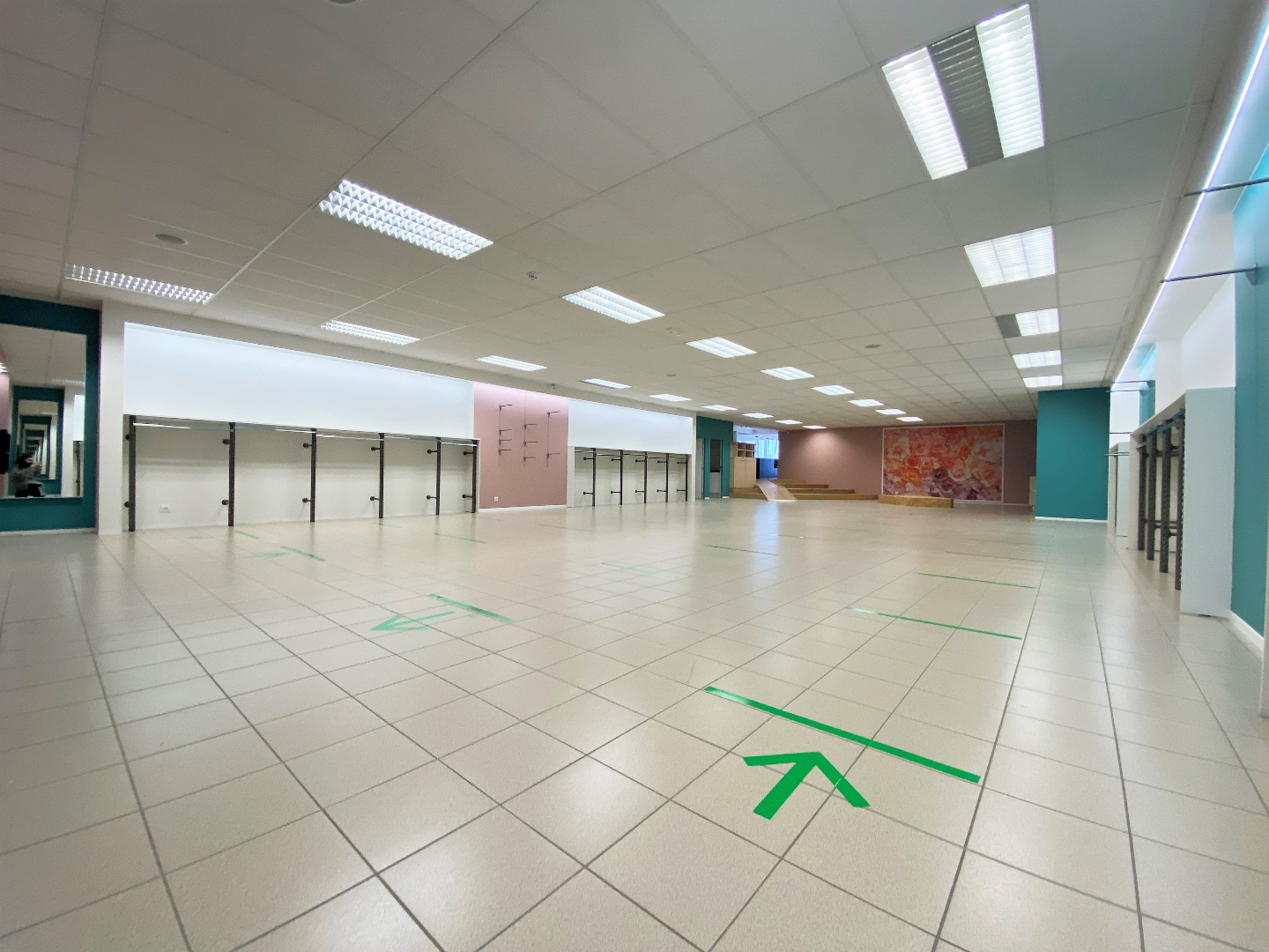 De totale oppervlakte bedraagt 460 m² en bestaat uit een winkelruimte/kantoorruimte met ernaast een grote ruimte met paskamers. Tevens is er op het gelijkvloers een keukentje, een toilet en achteraan het gebouw een bergruimte. Het gelijkvloers is voorzien van vloerverwarming op aardgas.