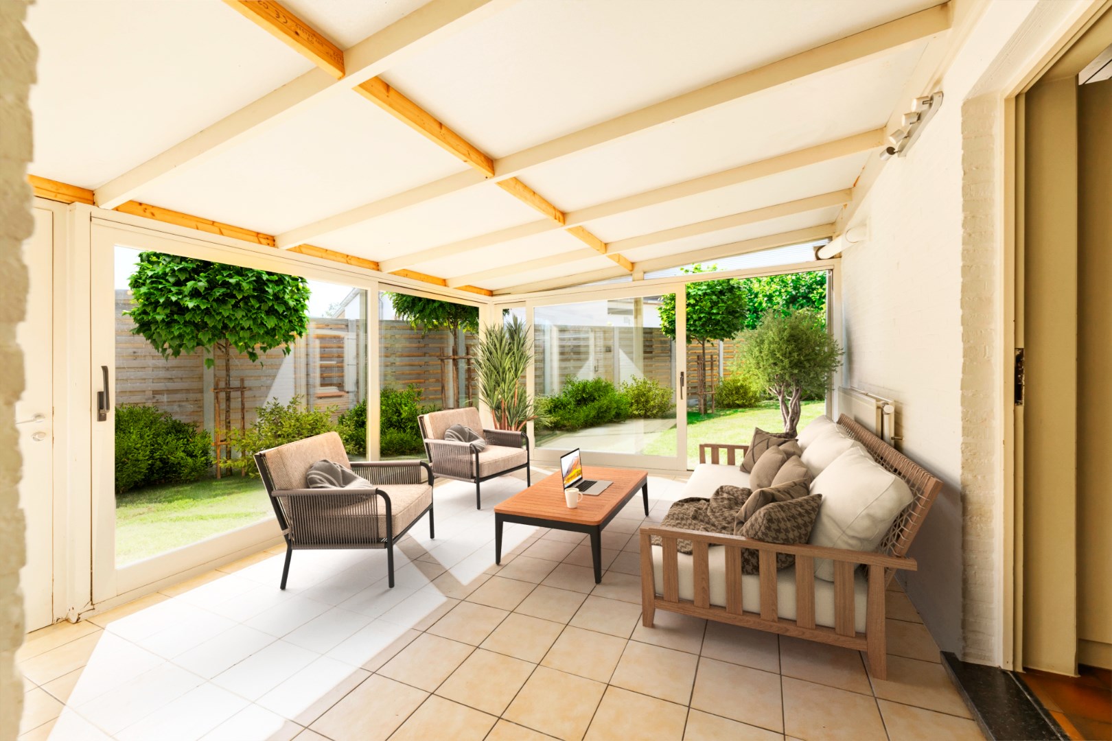 De woning is voorzien van een zongerichte voor- en achtertuin met voldoende parkeergelegenheid op eigen terrein alsook een extra aparte garage met berging.