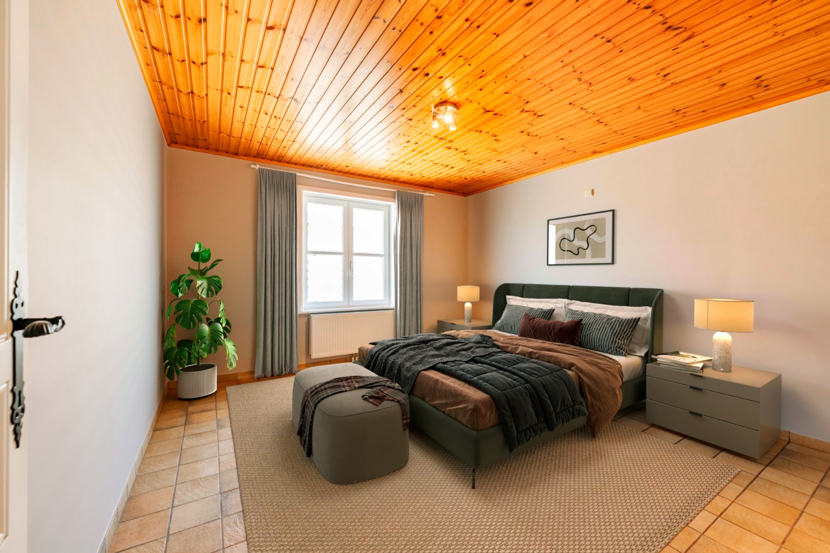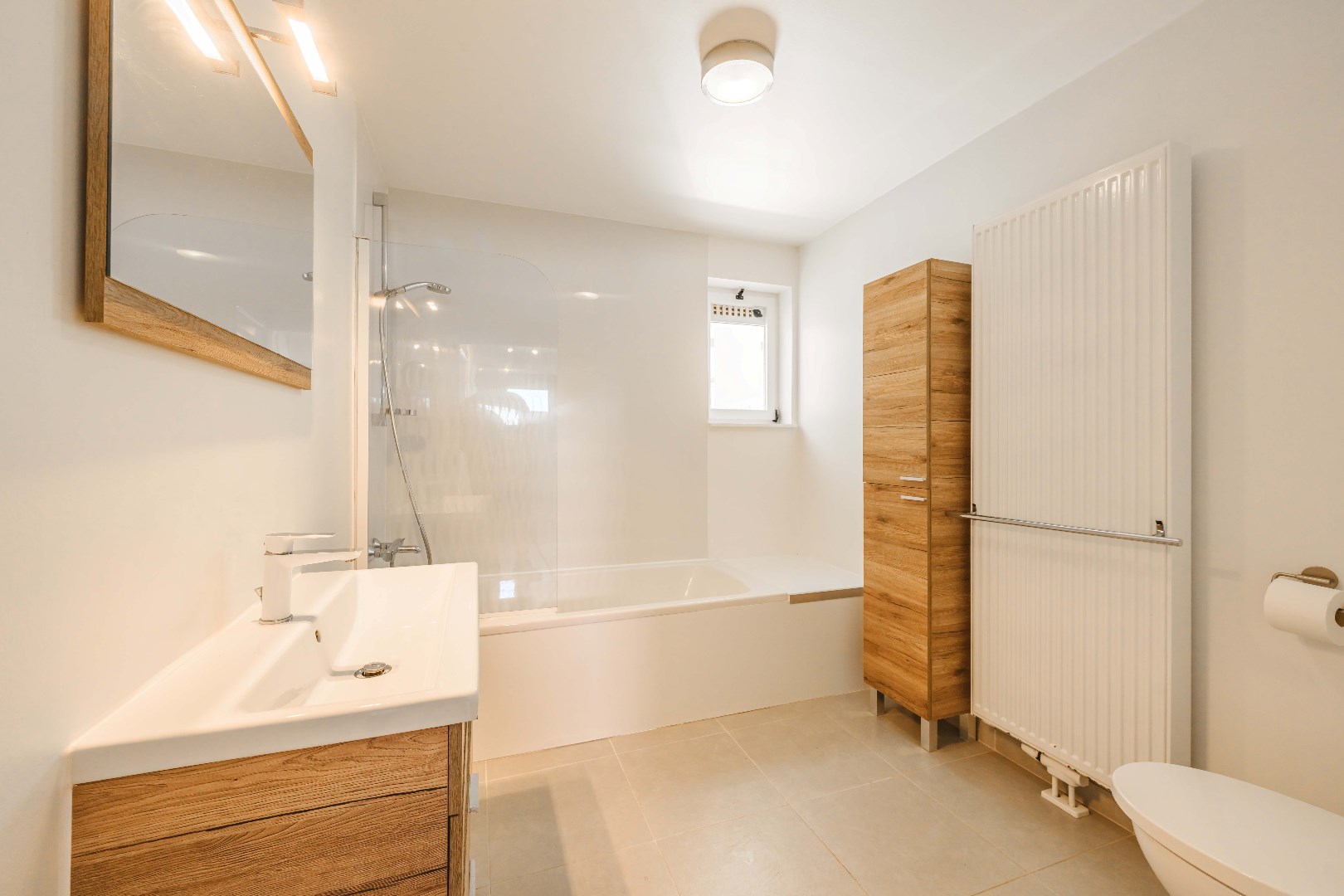 Op het gelijkvloers zijn ook de drie ruime slaapkamers (15,50 m² | 12 m² | 8,50 m²) alsook een volledig vernieuwde ingerichte badkamer (lavabo met meubel | ligbad met douche | toilet).