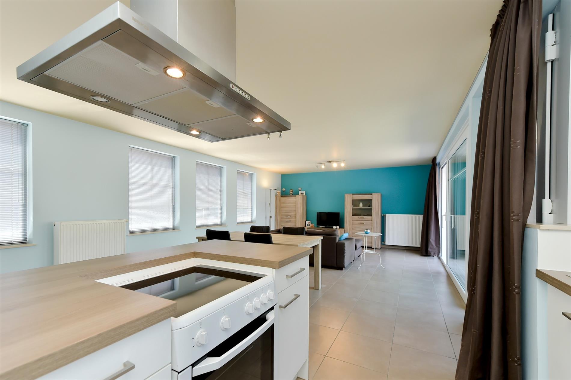 De open keuken is voorzien van alle comfort en omvat een oven - keramische kookplaat - dampkap - dubbele spoelbak - microgolf en frigo met vriesvak. Aansluitend is er een handige berging die toegang biedt tot de ruime garage.