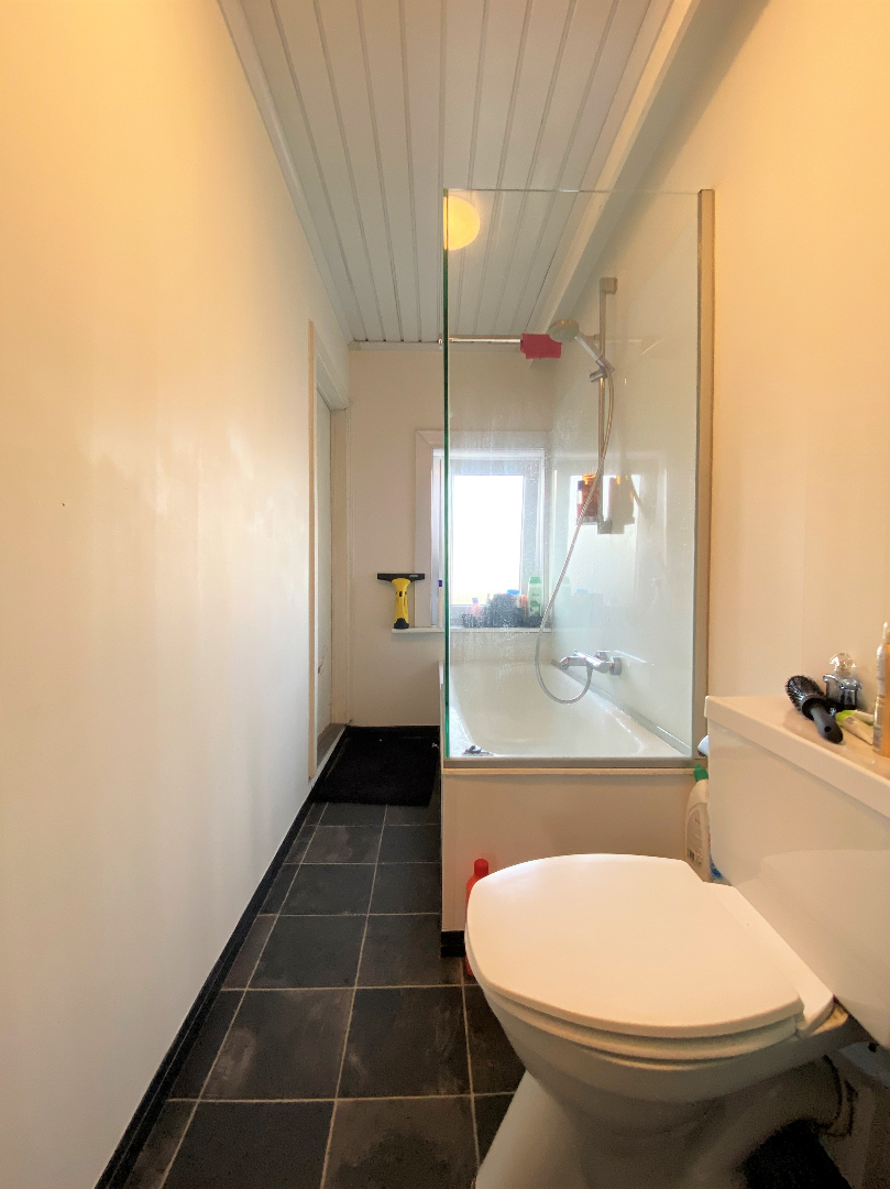 Via een vaste trap komt U terecht op het eerste verdiep. Dit verdiep omvat de nachthal, 2 slaapkamers, een berging en een badkamer met ligbad (mogelijkheid om te douchen), toilet en lavabo.
