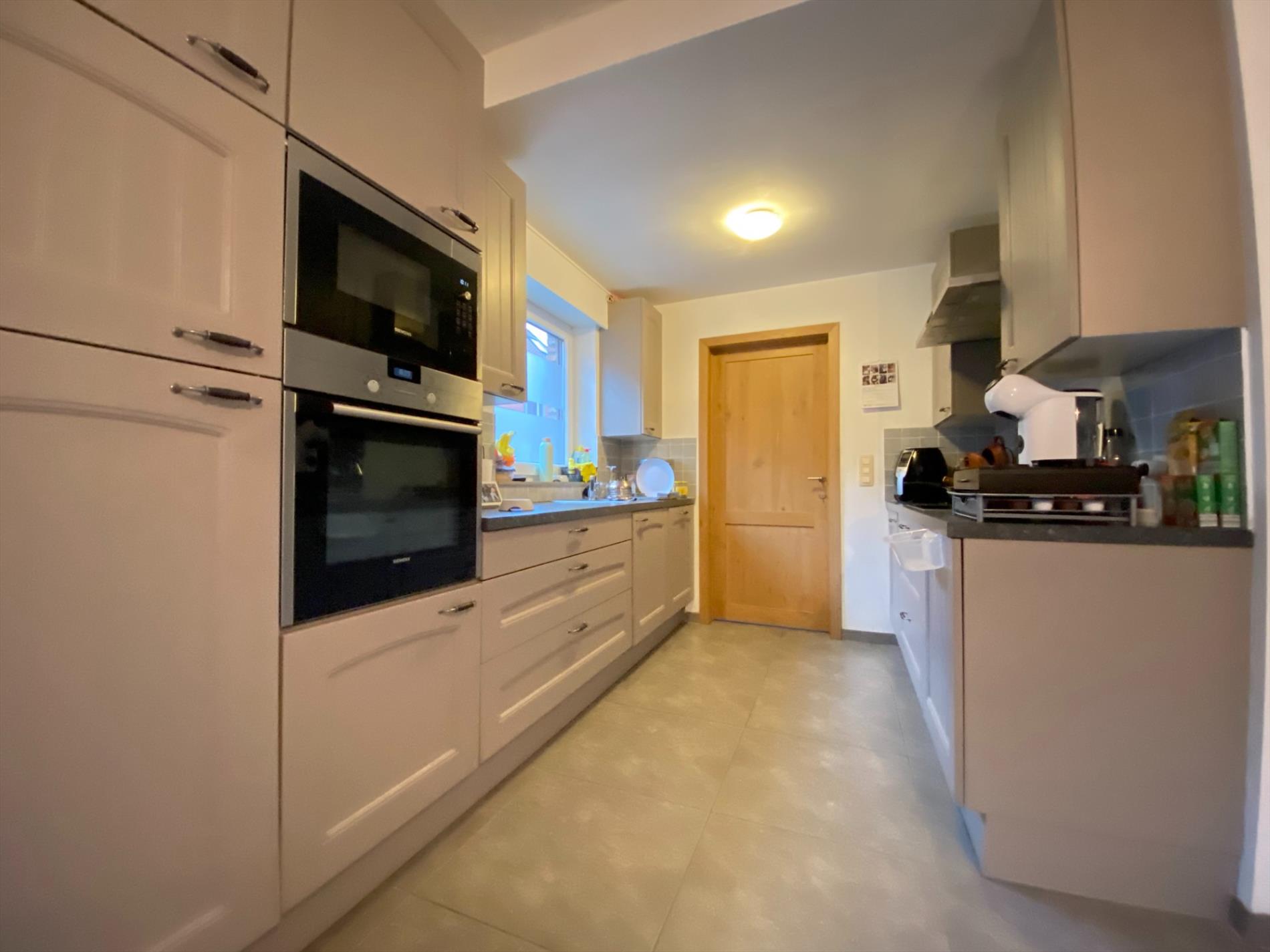 De landelijke keuken is voorzien van een koelkast, een oven, een microgolf, een keramische kookplaat, een dampkap en een spoelbak. Via het terras komt U terecht in de garage.