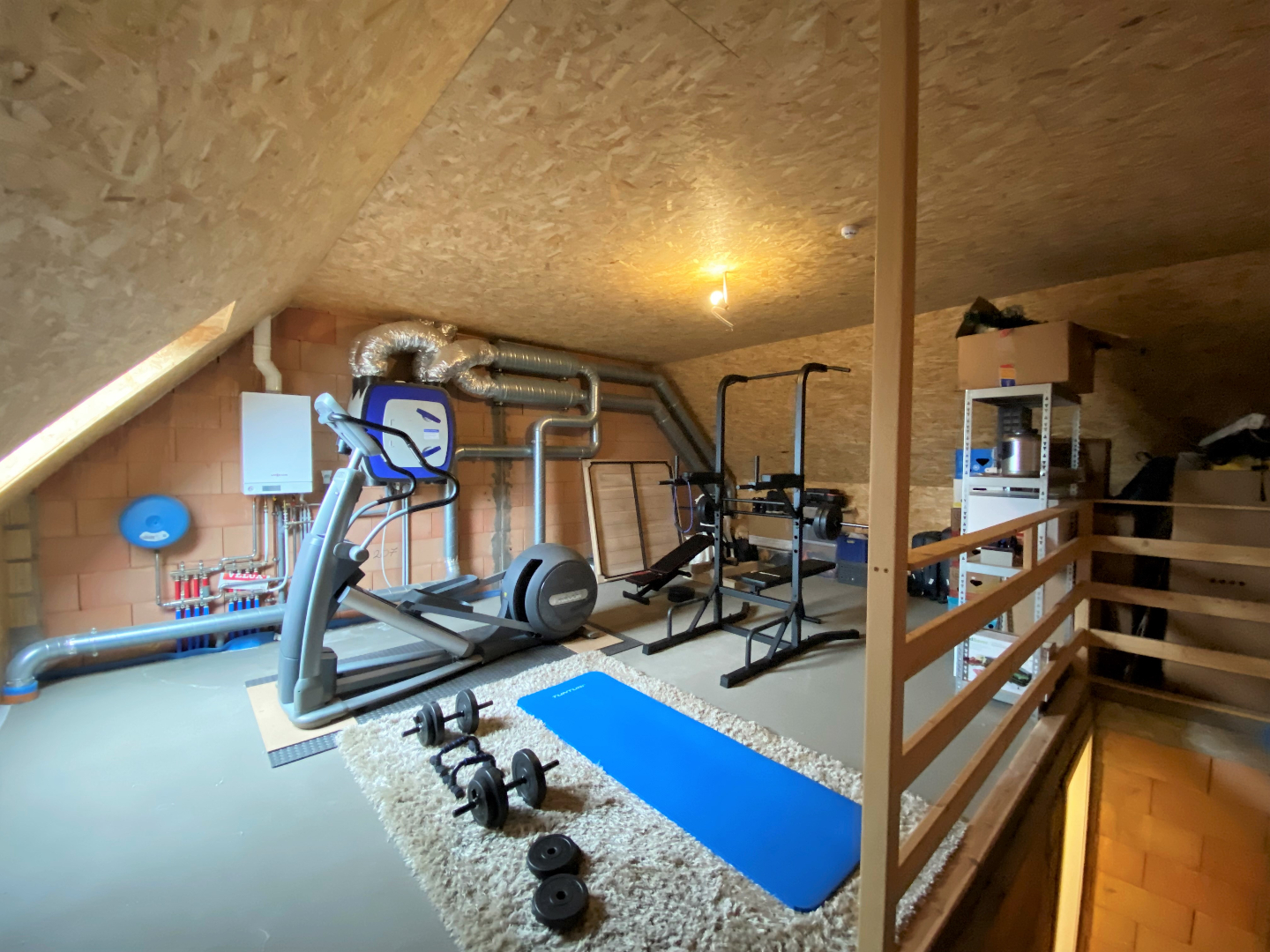 Het verdiep omvat een ingerichte badkamer (dubbele lavabo - Inloopdouche), 2 slaapkamers, een apart toilet en een berging. U beschikt tevens over een vaste trap naar de tweede verdieping/zolderkamer die U kan benutten als hobbykamer.