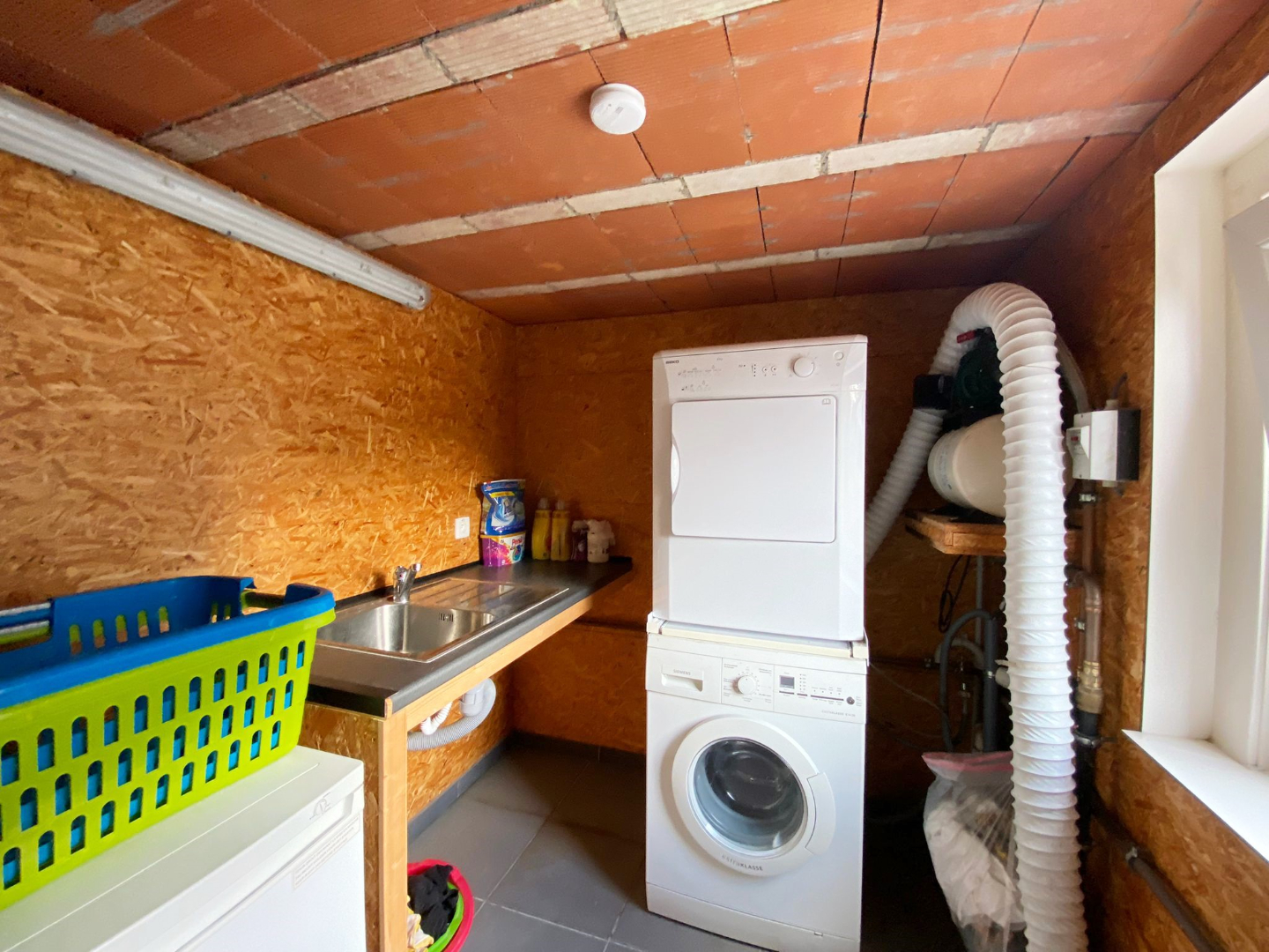 Aanpalend is er een droge ruime kelder en een apart toilet met handenwasser. Er is ook een extra bergruimte voorzien.