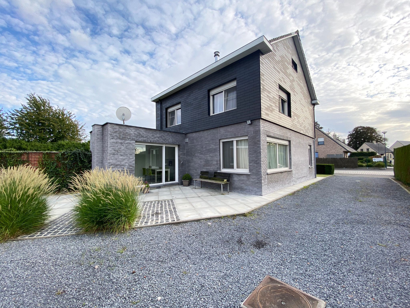 Het exterieur bestaat uit een besloten terras met toegang tot de buitenberging voorzien van aansluitingen voor wasmachine en droogkast, garage en nog een aparte afgesloten garage. Achteraan het perceel is ook een zonnige tuin.