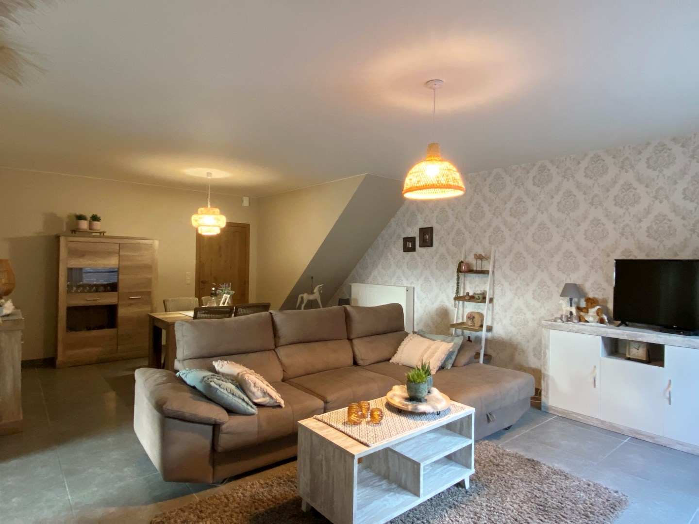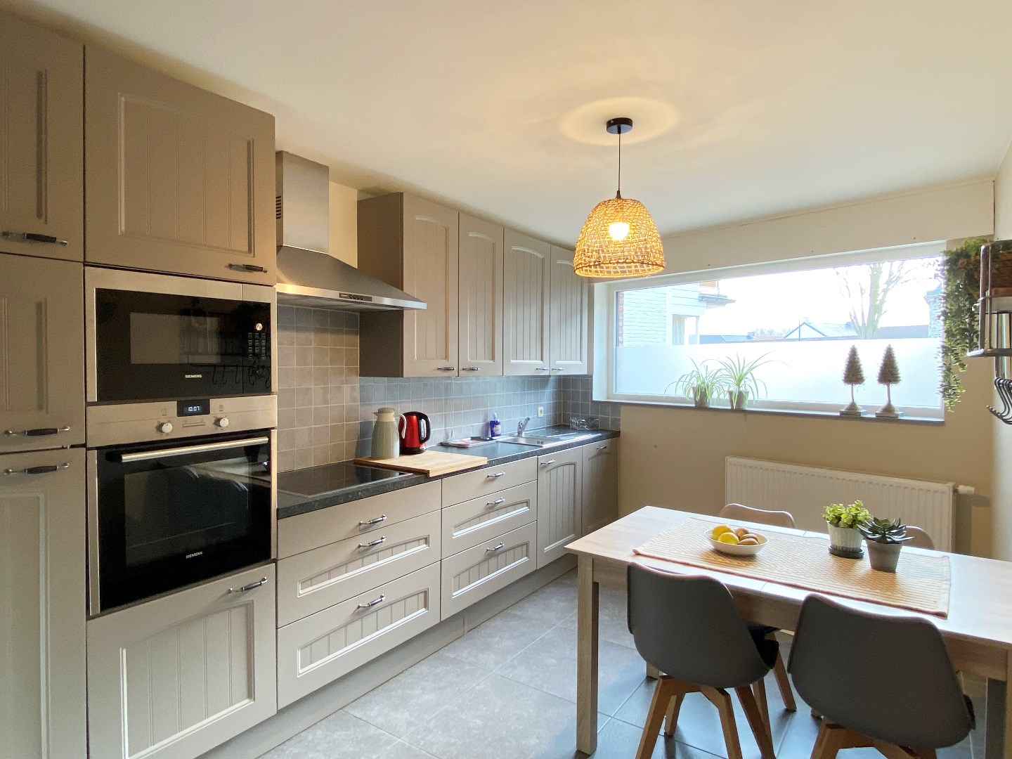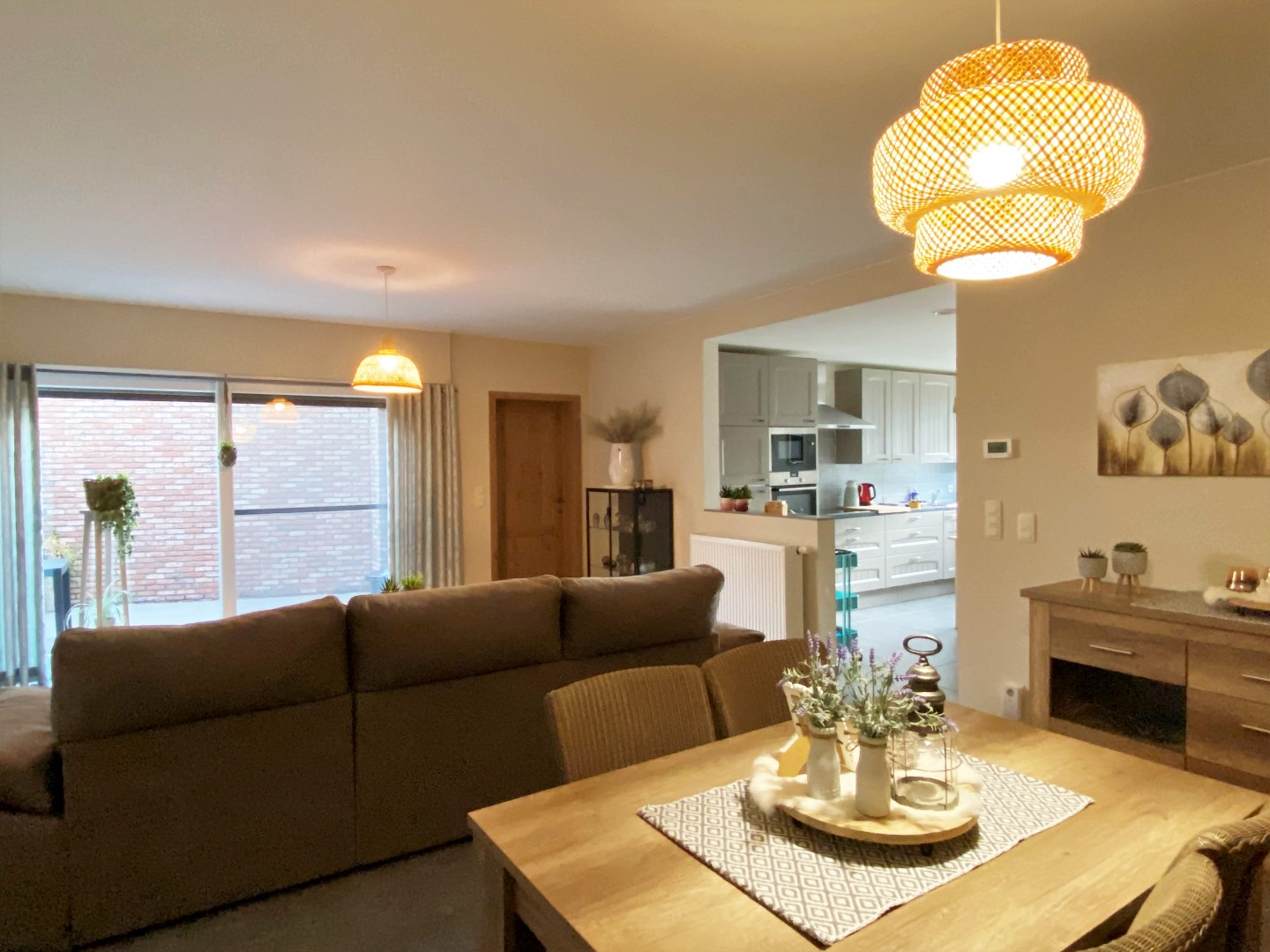 De woonkamer is voorzien van een eethoek en een zithoek. Aansluitend is de open ingerichte keuken.