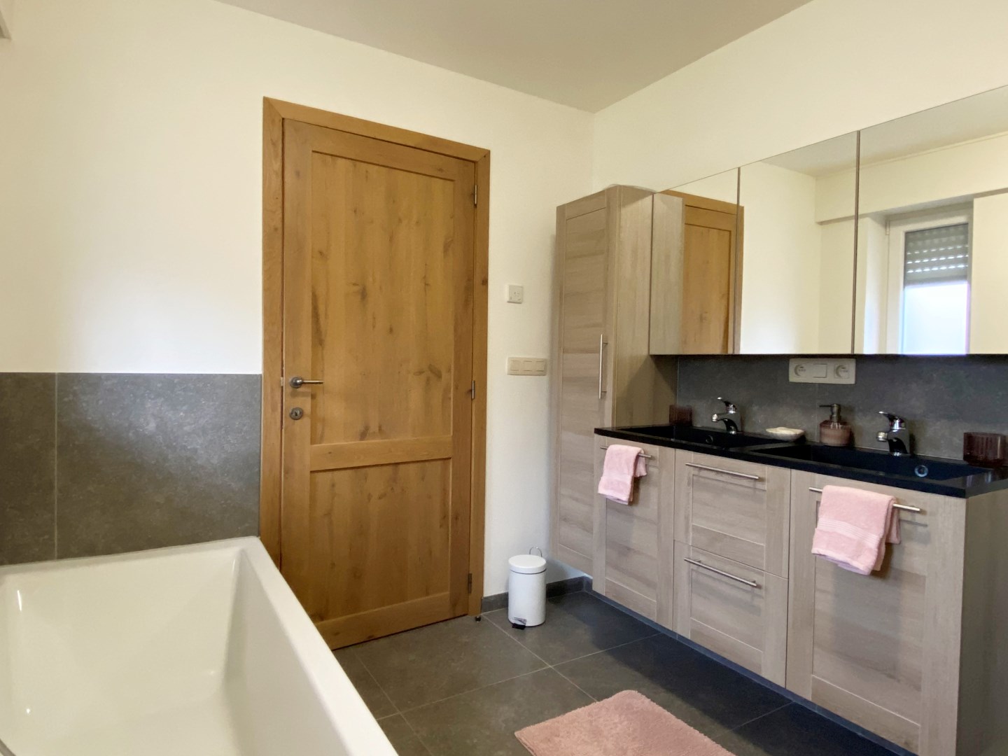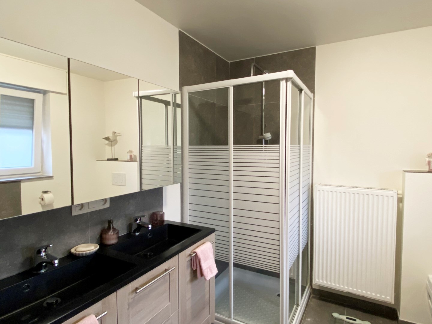 Via een eerste vaste trap komt U terecht op het eerste verdiep. Dit verdiep omvat een nachthal, 2 ruime slaapkamers (één biedt toegang tot het ruime ZONNETERRAS) en de badkamer ( bad - dubbelvoudige lavabo - douche en toilet ).